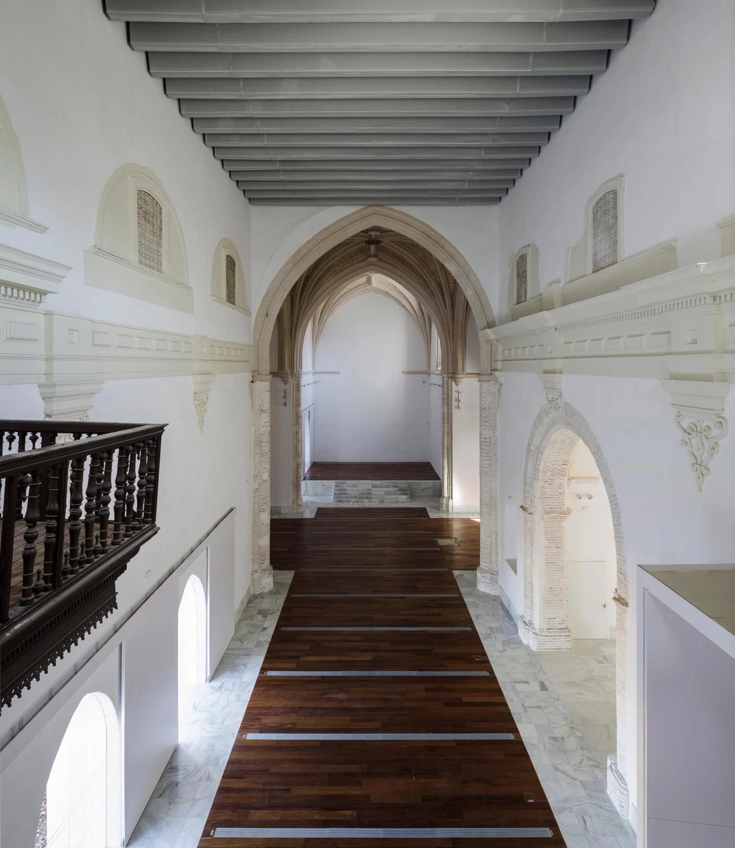 Declared an Asset of Cultural Interest in 1978, the Chruch of Santa Ana de Carmona is part of a group of 16th-century religious buildings. In 1975, the single-nave temple with a Latin cross plan fell into disuse and its two roofs (Mudejar and Baroque) collapsed, to be later rebuilt with a metal frame. In 2012, the Carmona City Hall set out to upgrade the building and turn it into a venue for cultural events. After an exhaustive identification of heritage elements, the refurbishment project considered several interventions: reinstating openings on the south and west facades; redoing the floor, which incorporated most of the building services; executing a new technical ceiling in the main nave, compatible with the remains of the planked timber vault and elements from the 17th century; and reviving the spatial relationship between the main nave and the 16th-century chapel and the sacristy.
