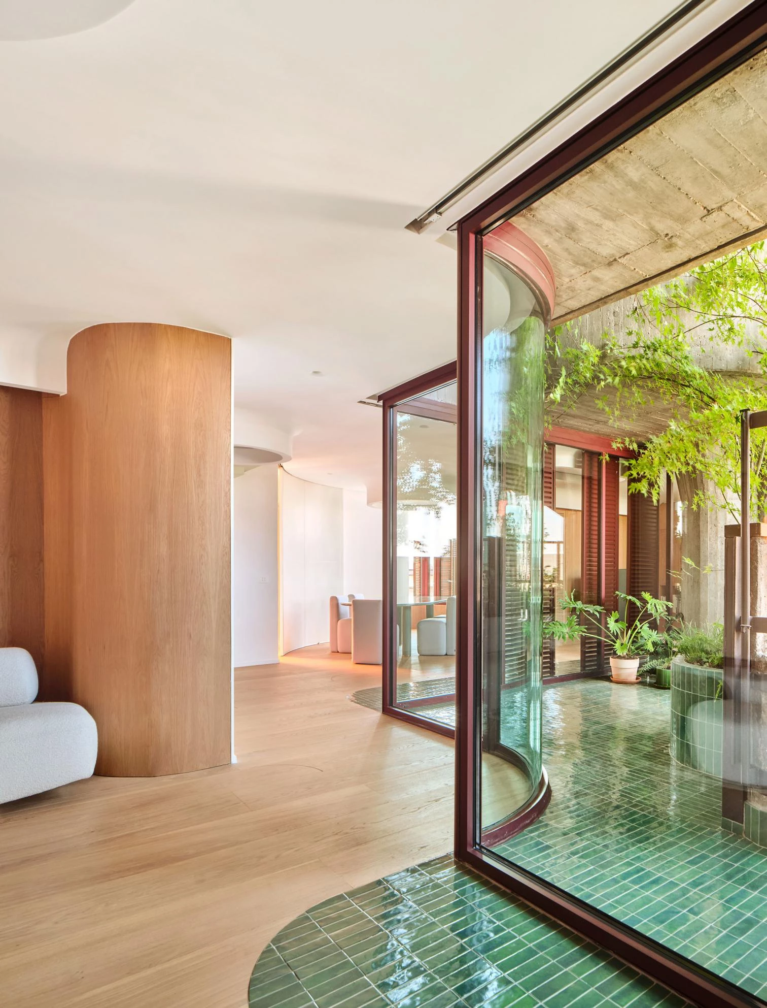 It can be intimidating to measure oneself against old masters, but fortunately, as Thomas Bernard said, “in the end we are abandoned” by them. That way we can overcome the anxiety of the influence they wield over us, and the respect they deserve does not clip our proactive freedom. An example is this renovation of a duplex in Francisco Javier Sáenz de Oíza’s Blancas Torres apartment building. With archaeological thoroughness based on original plans, superfluous additions were removed, reestablishing the layout that opened out to terraces and enhancing the curved structural screens, all while introducing new solutions to update the amber atmosphere envisioned by Oíza for his vertical garden city.