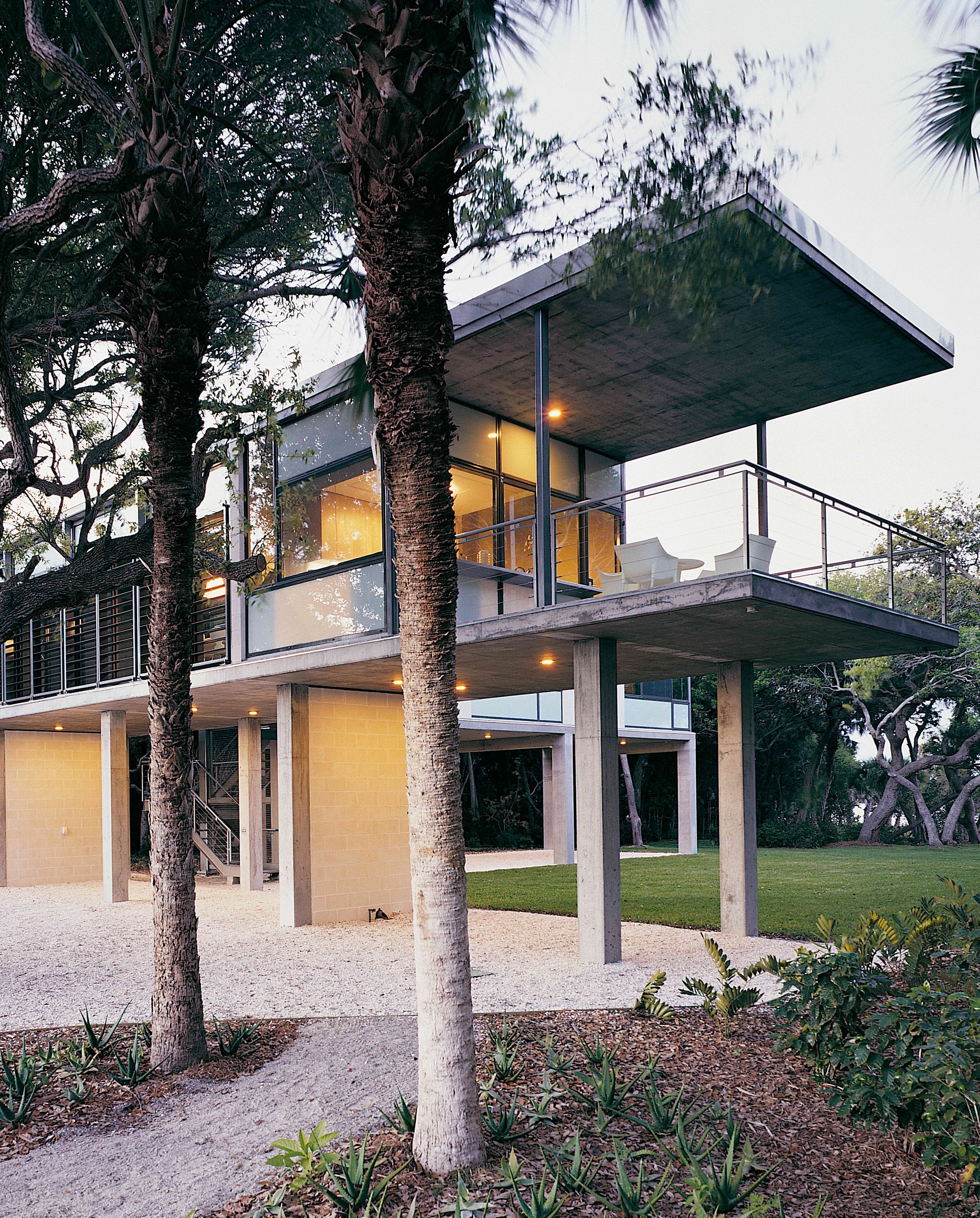 The Florida heys – those narrow tongues of land which run parallel to the coast – are an exceptional site and a favorite location of the well-to-do class to build their houses. Scenarios par excellence of a life of luxury which reached its greatest splendor during the fifties decade, the parcels surrounded by a lush vegetation and with direct access to the sea are still today a coveted place of residence. In Casey Key, on a lot which reaches the water’s edge, one of the mansions which Paul Rudolph designed around 1957 has now been extended with a pavilion to accommodate the grown children of the couple who own it. Though fifty years separate one house from the other, both share the same concern for facilitating the cross ventilation of every room. This measure – which is essential considering the hot and humid climate of the area – also constitutes the main argument of vernacular typologies such as the dog-trot, a dwelling traversed by an open gallery to allow the flow of air currents between the rooms.