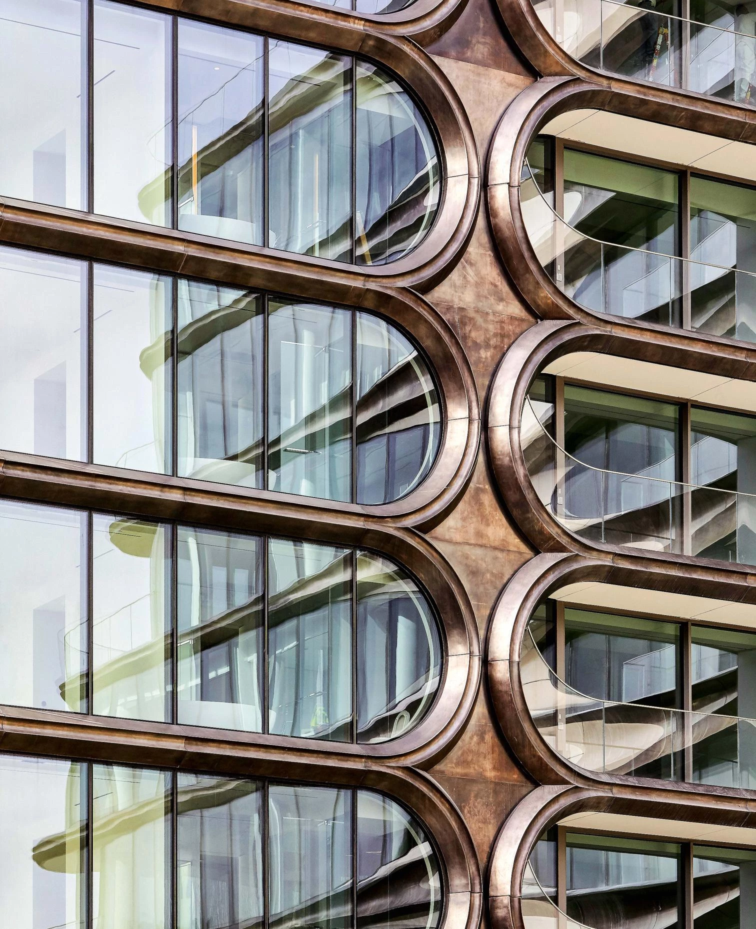 The project involves 39 condominium units distributed in 11 stories, with bespoke interior spaces, technologies integrated into them, and communal zones including a spa, a skylit swimming pool, a sculpture garden, and a recreation room complete with an IMAX cinema. The facade is fragmented vertically by means of a series of artisanally executed steel pieces intersecting in V shapes. Brushed and tinted manually, these panels evoke the industrial past of the Chelsea neighborhood while strking a contrast with all the brick buildings around.