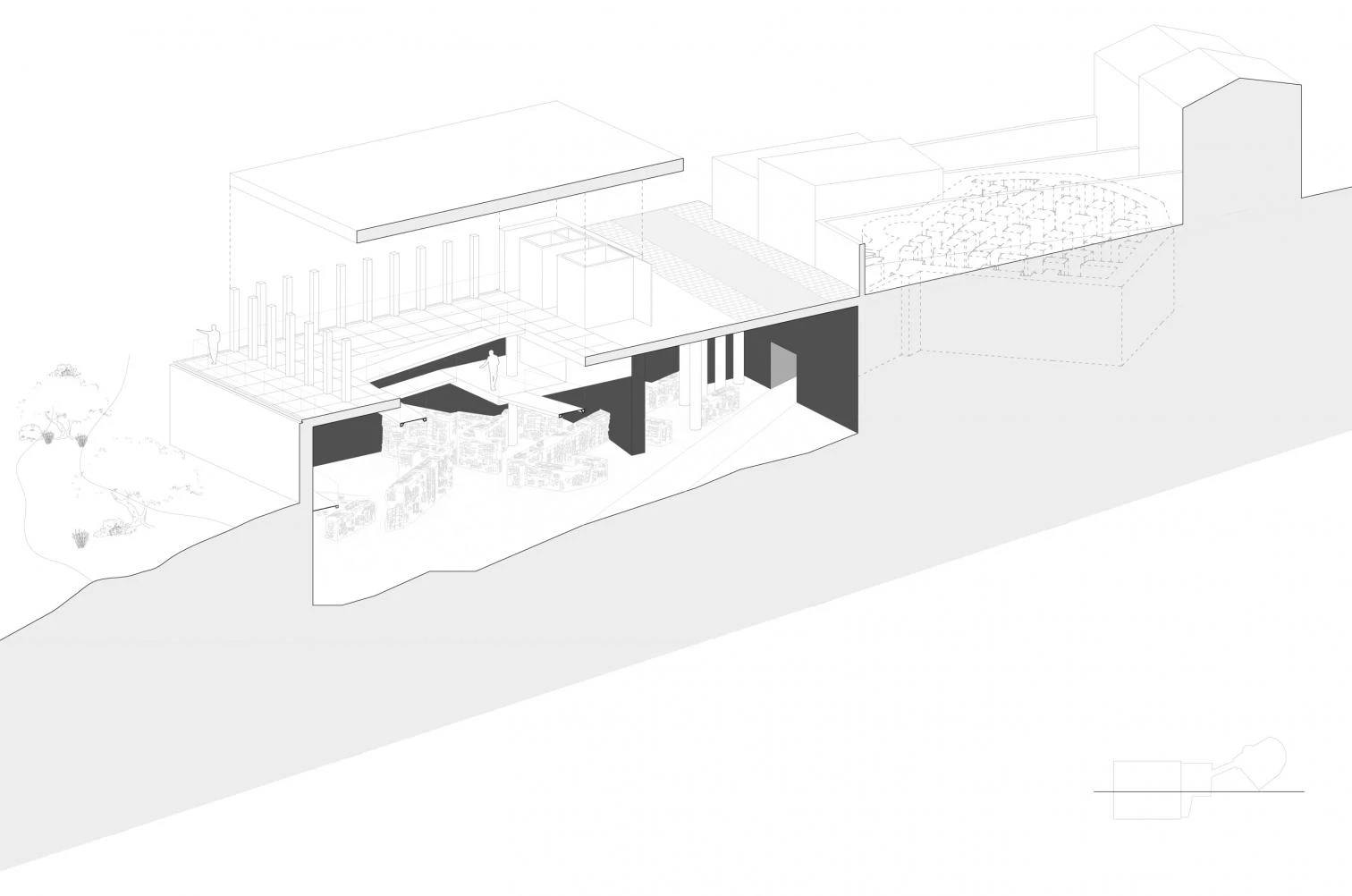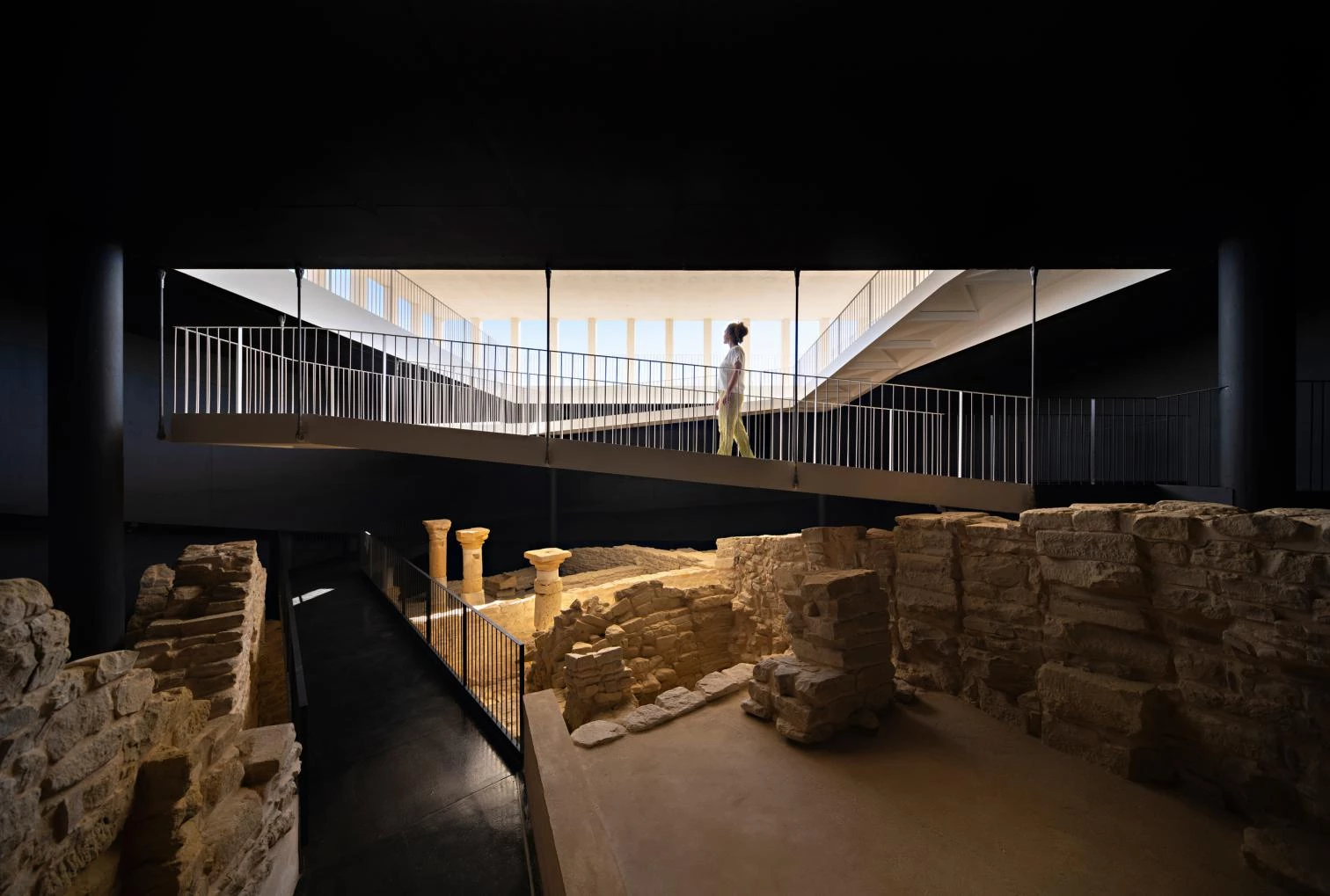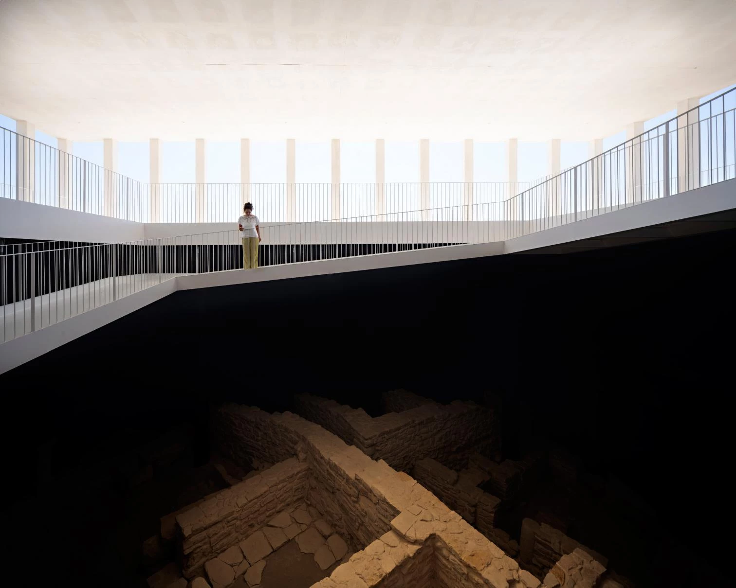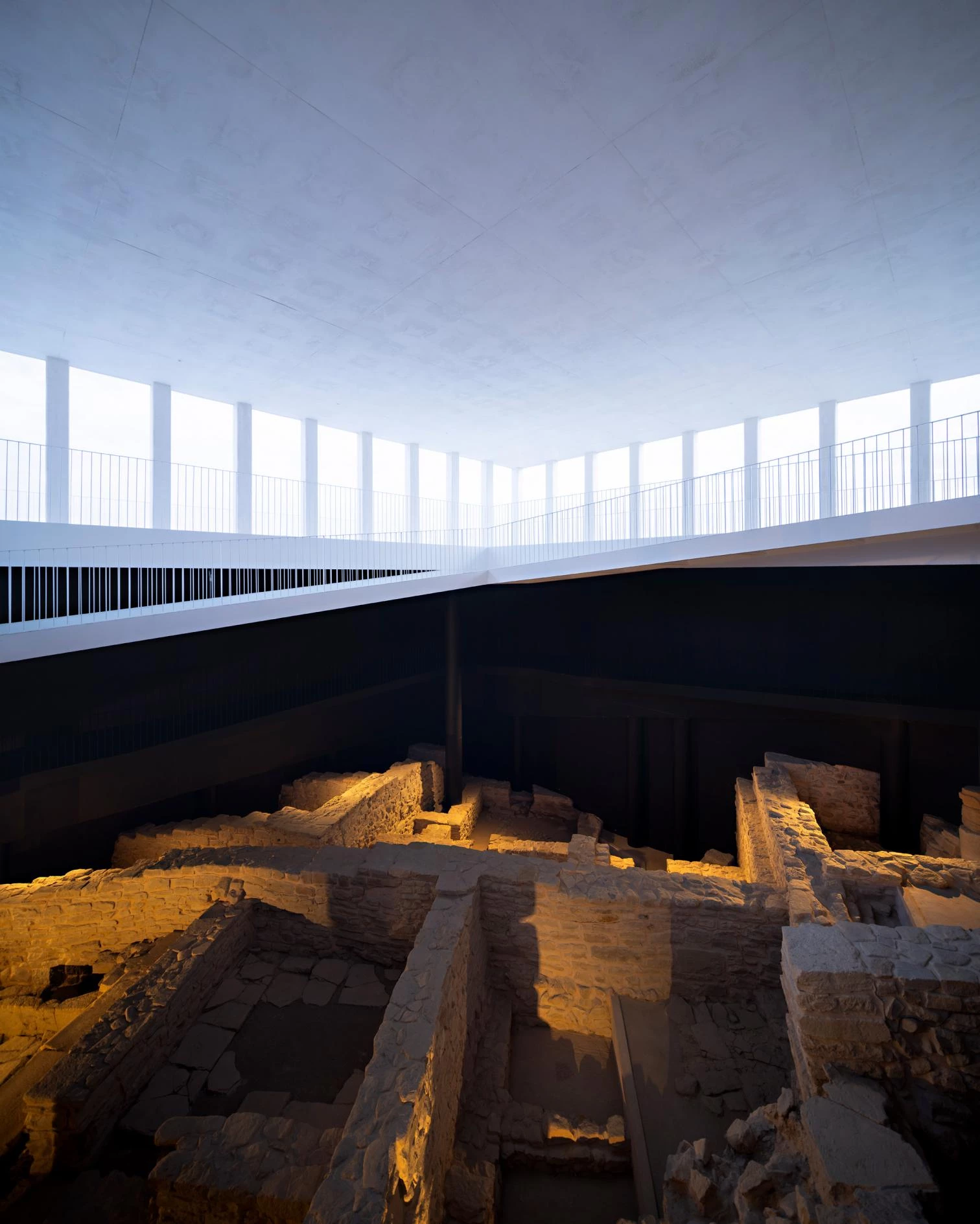The project was based on the interconnection of opposed realities. Vis-à-vis the complexity is a discourse grounded on the simplicity of a clean, geometrically exact architecture that does not come into conflict with the ancient architecture, meaning not only the actual Roman cistern but also all the dwellings unearthed during the archaeological dig. And contrasting with the hidden subterranean space where no light enters is the bright and diaphanous space that welcomes the visitor. The result is a dialogue between archaeological heritage and contemporary architecture.