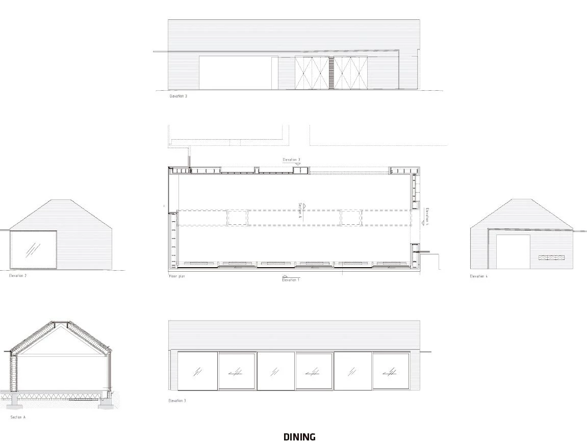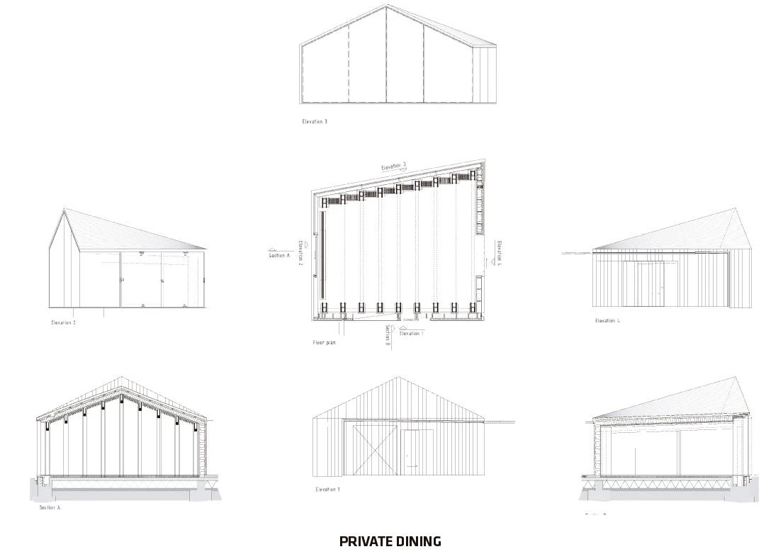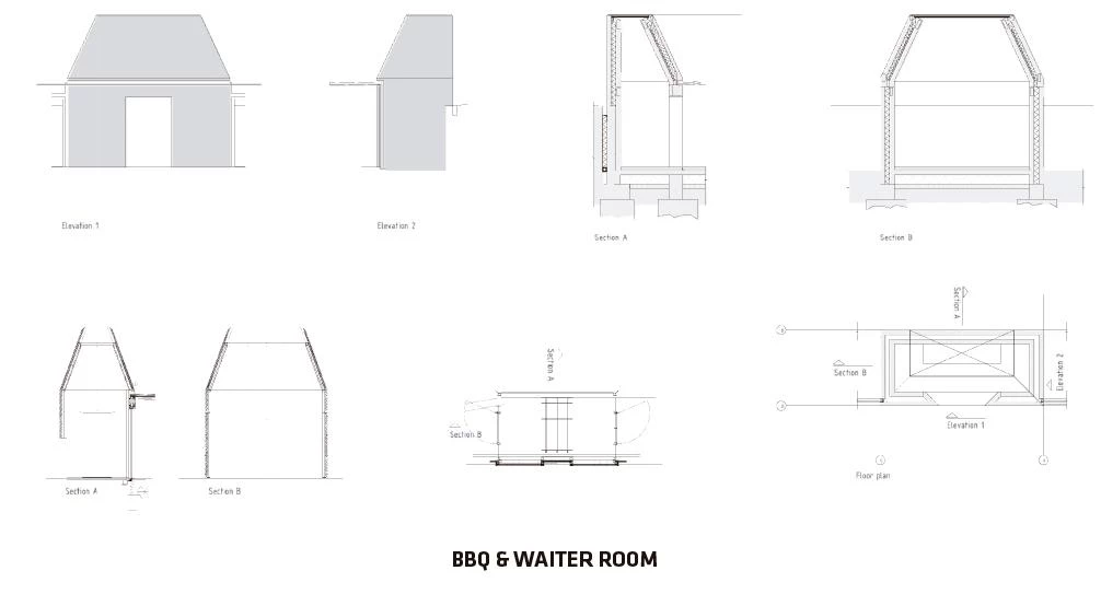 The project had to preserve and carefully refurbish the building that was once used to store mines for the Royal Danish Navy. Besides this protected building, the restaurant could occupy some installations that were later annexed to it. The facilities corresponding to the inner workings of the establishment were arranged in a linear sequence within the Søminedepotet, while the rooms directly linked to the diner’s experience were placed in independent pavilions at the southern end of the premises. This idea comes from the traditional organization of Nordic farms, the sæter, in which different tasks are assigned to different constructions scattered in the landscape. So it is that the entrance foyer, the wine zone, the barbecue, and other areas are housed in seven autonomous volumes adapted to the specific needs of each function. The centerpiece is the Service Kitchen, from which the chefs can more easily stay in control of the restaurant’s operations, and diners are able to follow the various parts of the process normally hidden from view.