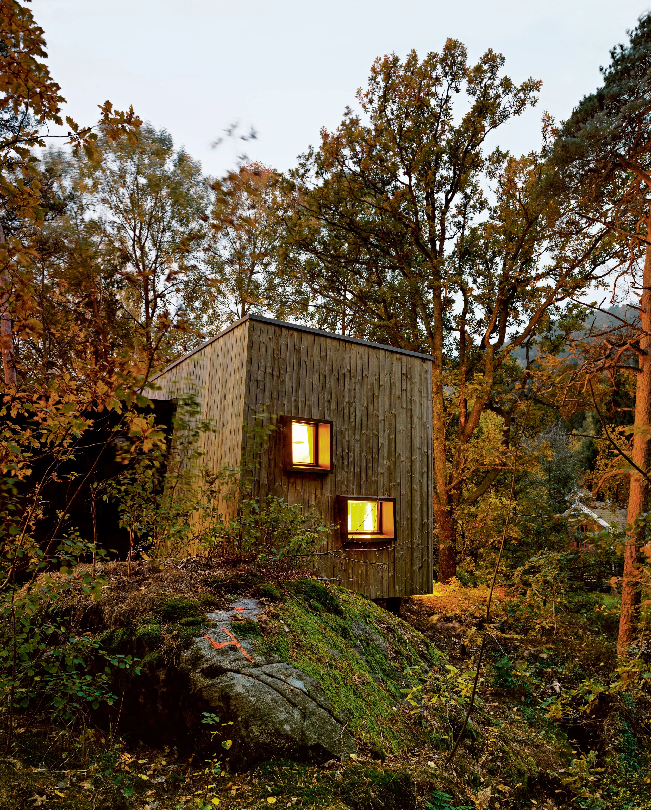 In the peaceful ambience of the forests, only a short walking distance from two of Norway’s largest hospitals, Snøhetta has designed two secluded wooden shelters aspiring to make hospitalization easier for patients and their families. Designed for the Friluftssykehuset Foundation, which has donated the cabins to the hospitals, the Outdoor Care Retreats offer visitors a physical and psychological respite from strict treatment regimens and the isolation that often follows long-term hospitalization. The subdued 35 m2 spaces stand in stark contrast to the monumental hospital buildings that they are affiliated with. Each cabin consists of a main room, a smaller room for conversation and treatment, and a bathroom. The interior is fully clad in oak, echoing the natural materiality of the woodlands outside. Inside the space, colorful, sculpted pillows can be moved around freely, allowing children to build huts or lie down to gaze through the circular window of the main room’s ceiling. The cabin’s large glass windows can be fully opened, inviting nature into the space. In this way, visitors can peek into the woods, smell the forest, and listen to the sound of trickling water while still being inside the cabin...[+]