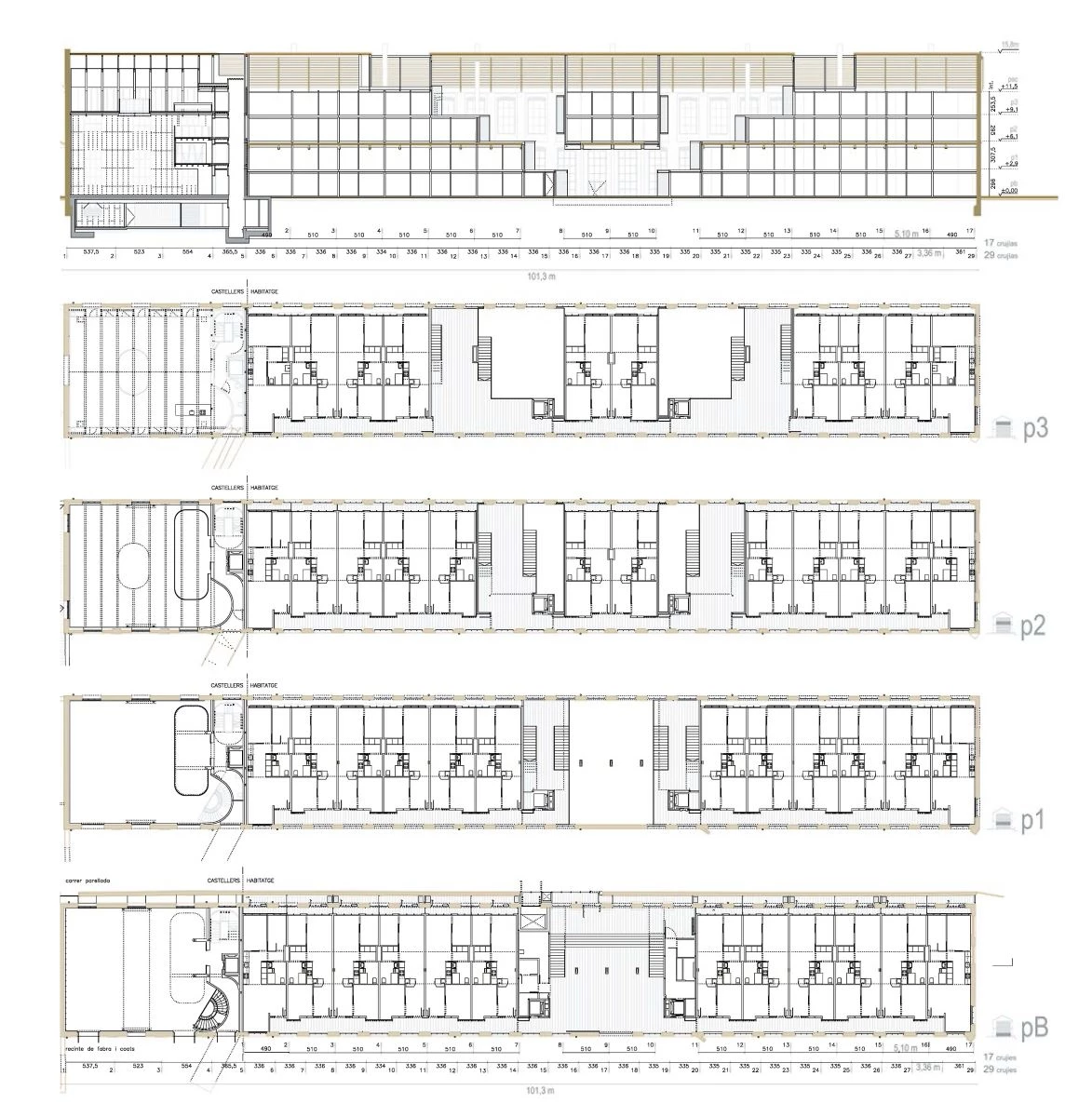 Viviendas en la nave de Fabra & Coats Social Dwellings in the Fabra & Coats Factory, Barcelona (Spain).