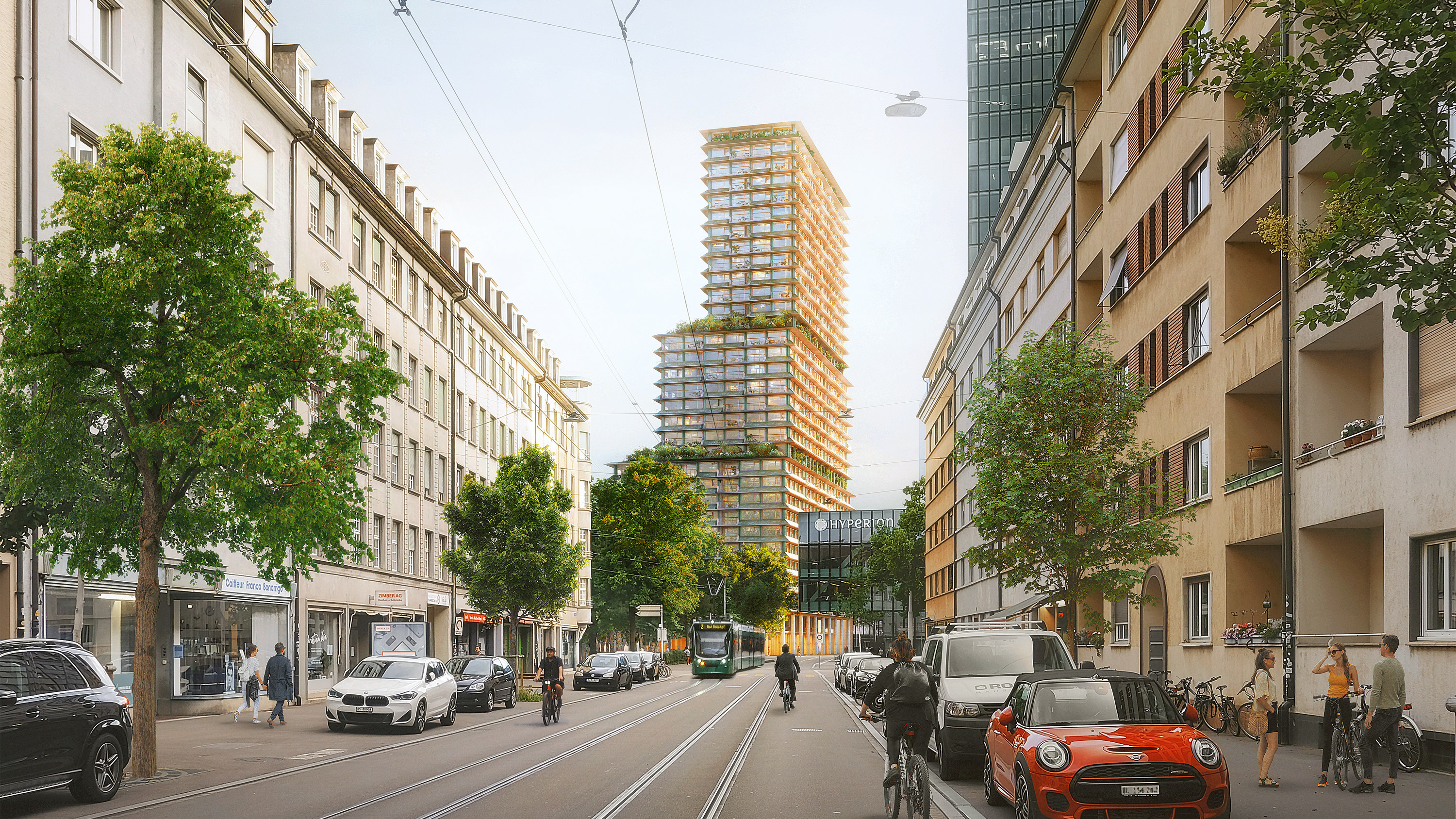 Basel’s Messeplatz district is home to the convention center (also by Herzog & de Meuron), life science industry, and the Badischer Bahnhof station. The Rosentalturm project aims to enhance local ties with residences, businesses, and green spaces, emphasizing social and ecological sustainability. It strategically positions a mixed-use tower and a longitudinal building to create an urban green space in between that can enlarge Rosentalpark again to become an active urban space with changing uses. The project will provide over 350 flats for a diverse mix of residents, with about a hundred units offered at an affordable rate. The ground floor will house local small and medium-sized businesses and start-ups, making the site a lively and versatile center of Kleinbasel...[+]