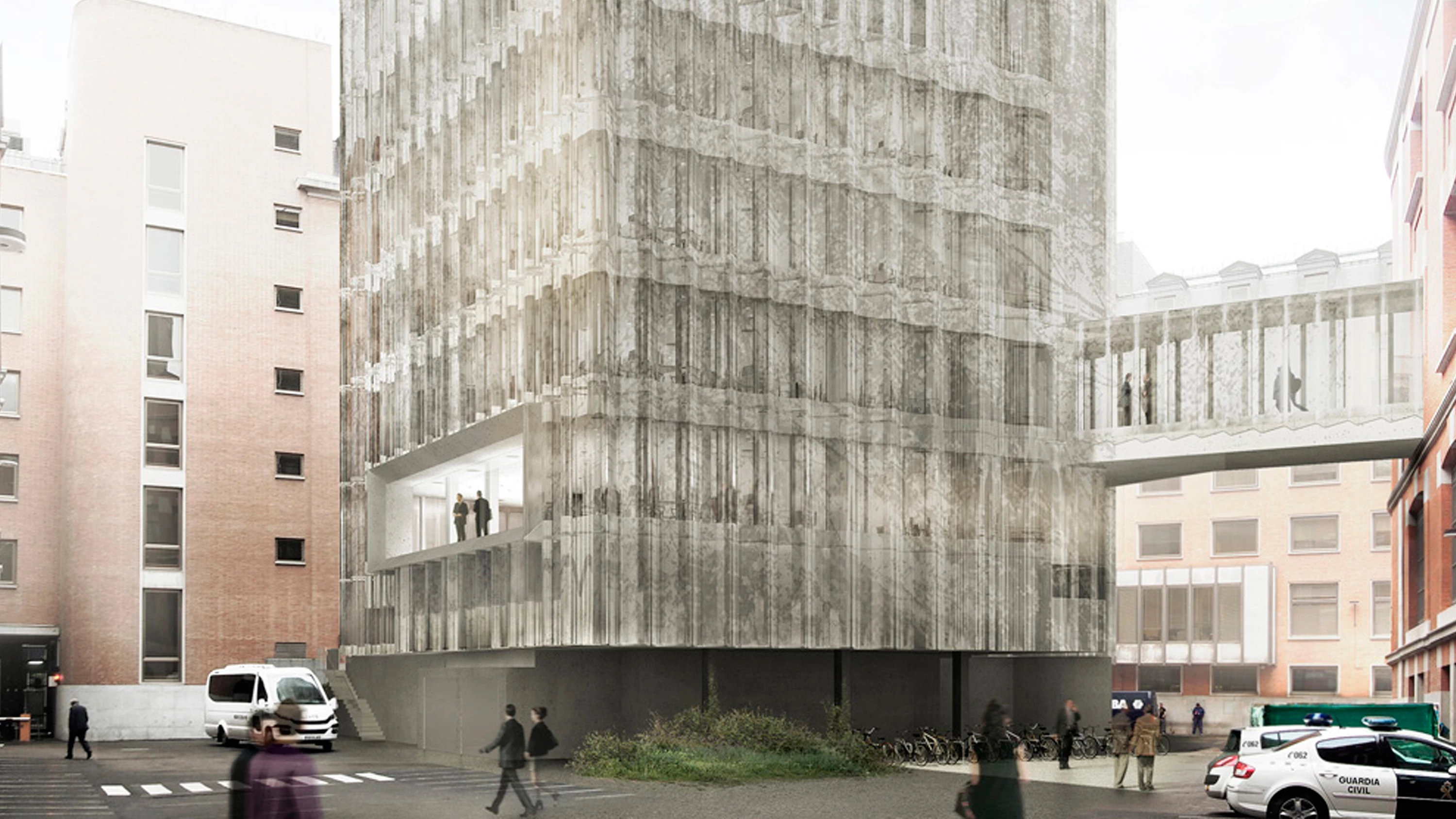 The firm Ruiz-Larrea & Asociados has been commissioned to renovate Cibeles Tower, an office block located in the courtyard of the Bank of Spain’s head offices, on Madrid’s Calle Alcalá. The intervention seeks to adapt the building to the surroundings and to the needs of the program, and plays out on three levels: infrastructural, functional, and energy-related. New circulation systems are provided, both for users and for technical installations. This reorganization makes it possible to optimize uses, giving rise to a free plan that can be modularized with dry-installed elements. Finally, the building is given a new skin, making it more energy-efficient.