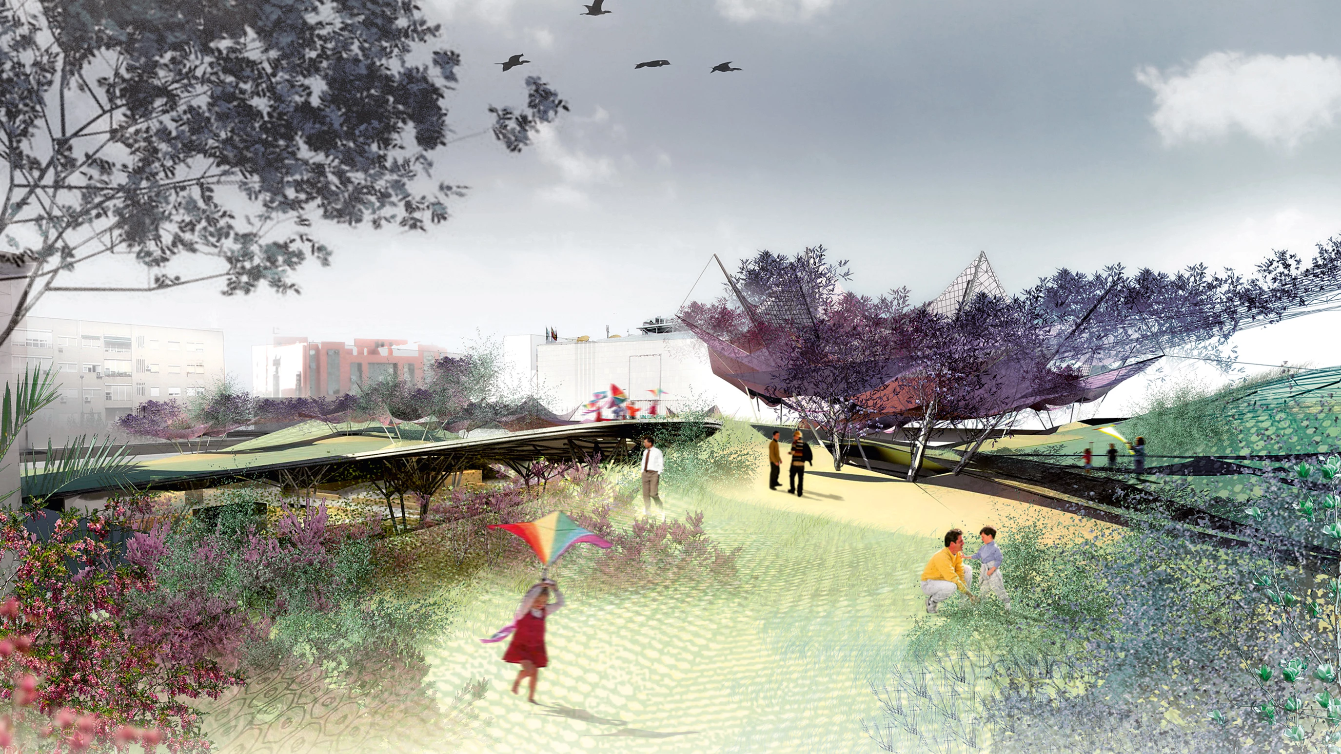 A metallic roof, landscaped and walkable, rests on the courtyards of the original Arab dwellings, maintaining the streets, facades and pavements that constitute the site exactly as they were...[+]