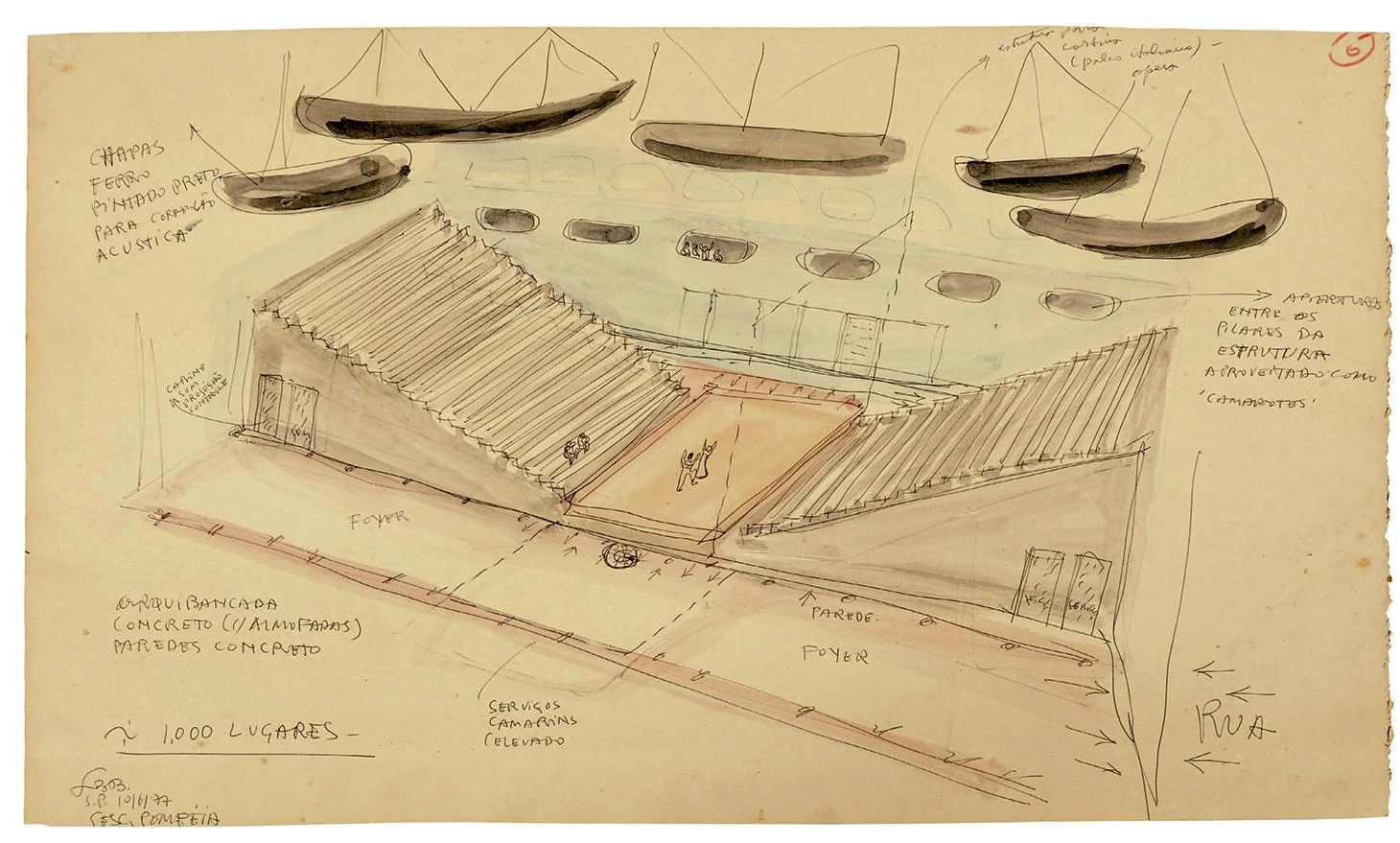 When Lina Bo Bardi visited the old metal barrel factory in the working class district of Pompéia with plans to build a sports and culture center, the space had already been occupied spontaneously by neighbors who spent the weekends amidst the warehouses of the industrial complex. The priority, therefore, was to maintain and promote this vital activity, without demolishing the existing structures, designed by the French François Hennebique, one of the pioneers in the use of reinforced concrete.