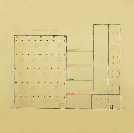 Lina Bo Bardi’s determination to preserve the old factory reduced the space available for sports facilities to a small corner of the plot that, furthermore, had a central corridor on which building was not permitted because there was groundwater. The solution was radical. Two concrete towers house the stacked sports spaces and the dressing rooms. Between them, eight prestressed concrete footbridges span distances of up to twenty-five meters over the non-buildable areas. Rounding off the complex, a third cylindrical tower rising seventy meters high functions as a landmark that can be seen from afar inviting citizens to become part of this ‘little joy in a sad city.’