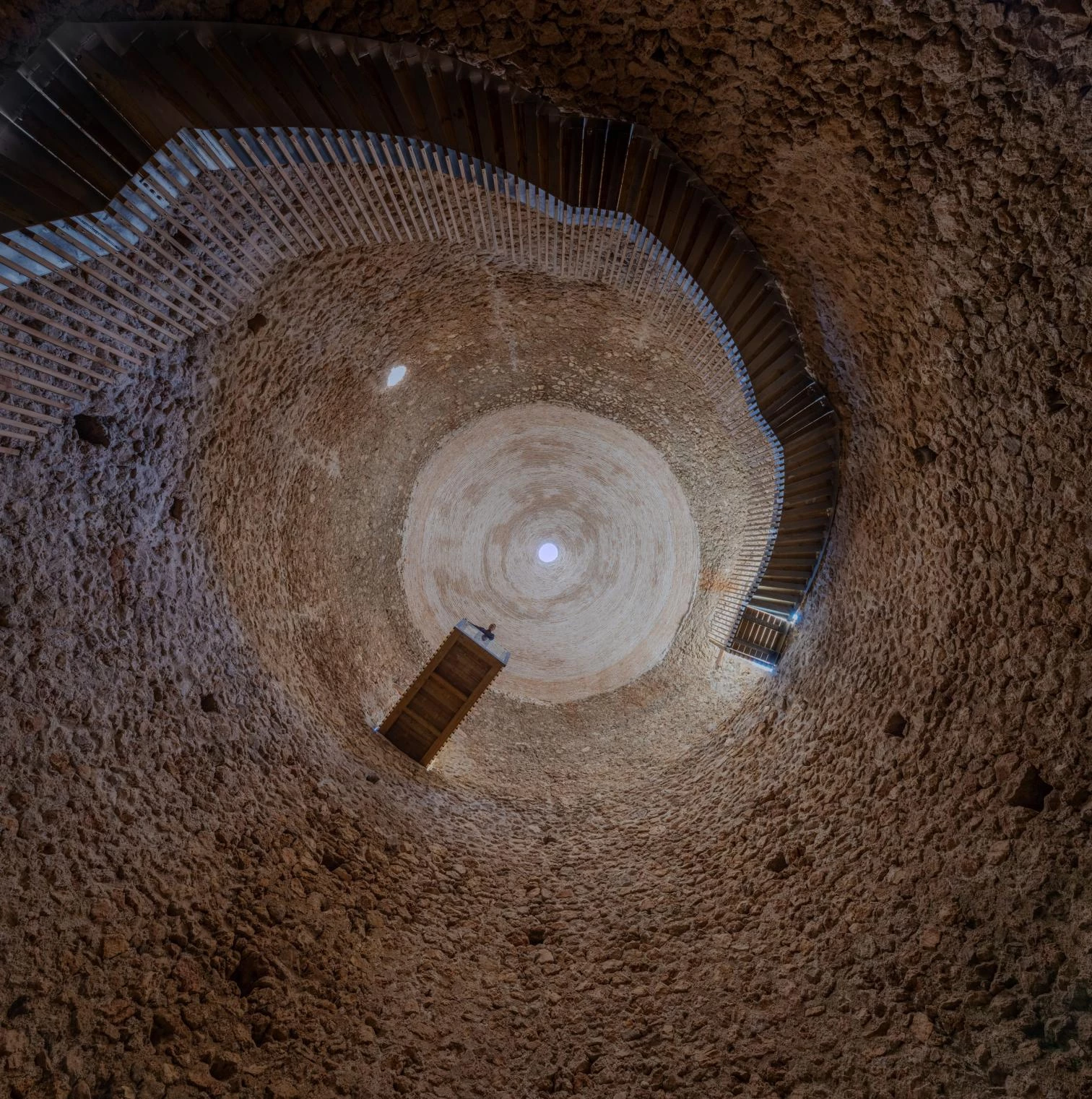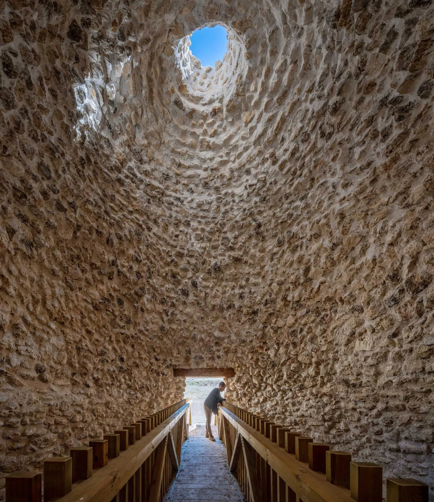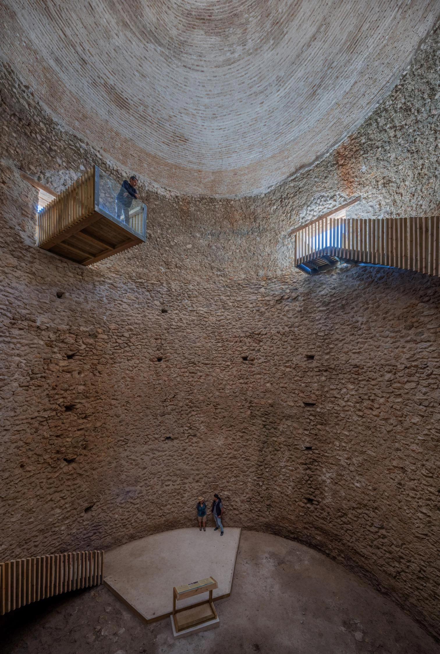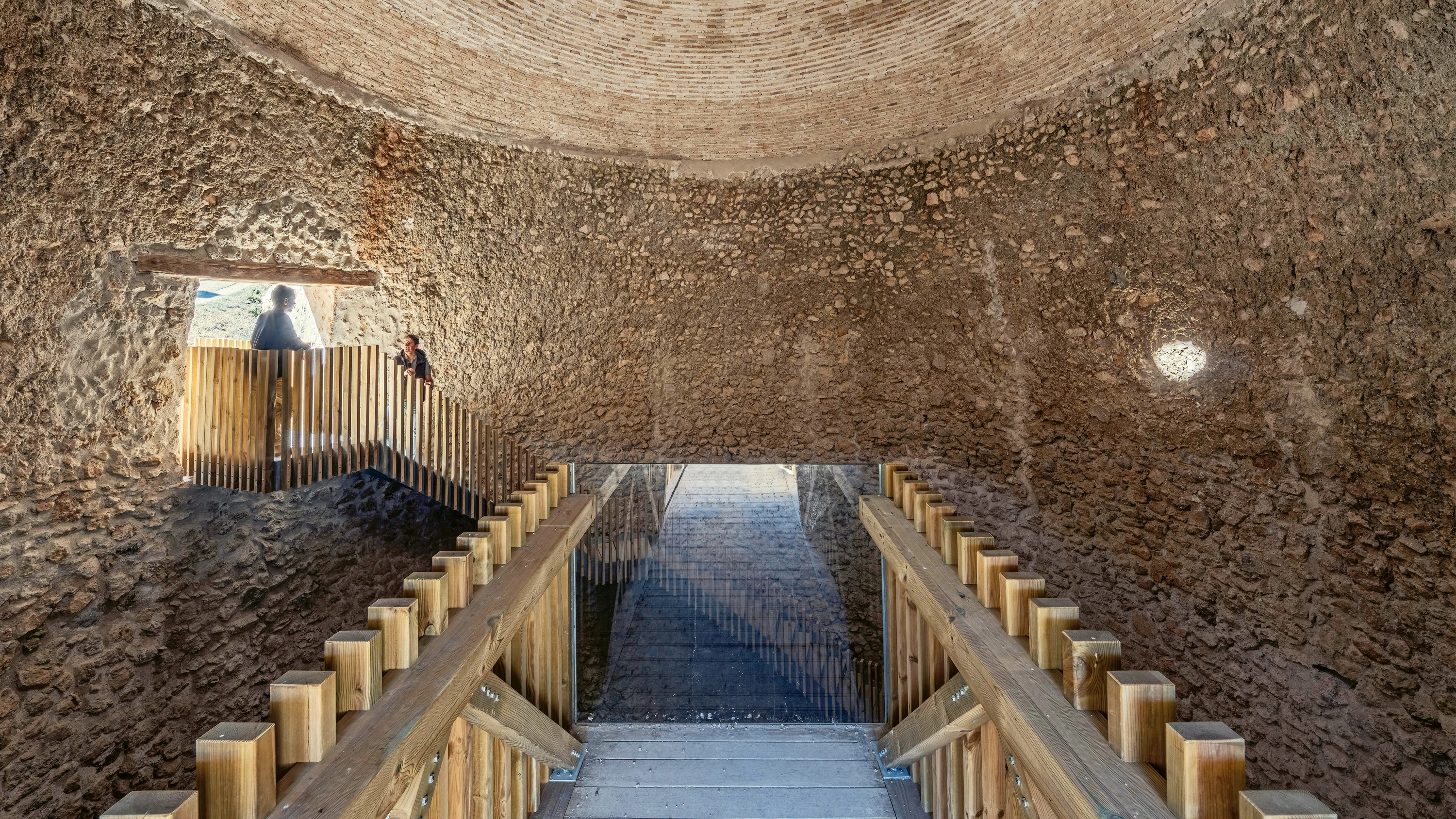 Twenty-five of those snow wells still exist high in the Murcian mountains and are now officially protected, following a thorough inventory and the devising of a plan to consolidate them. Two have thus been returned to their former glory, including the largest. Besides restoring the original geometry of the domes with traditional materials, a circuit of wooden stairs, catwalks, and balconies gives visitors close-up contact with constructions that were once ordinary and are now extraordinary.[+][+]