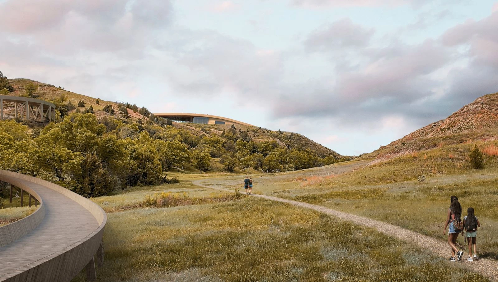 The Norwegian firm Snøhetta has won the competition for the Theodore Roosevelt Presidential Library, which is to go up in Medora, North Dakota, on the banks of the Little Missouri River. Selected out of 40 entries, including the proposals of co-finalists Studio Gang and Henning Larsen, the winning scheme mitigates the impact of wind with a gently sloping roof. Integrated into the landscape, the complex is held together by a web of paths and includes small pavilions conducive to reflection and to relish of views of Theodore Roosevelt National Park. The construction will draw from local materials and sustainable energy systems.