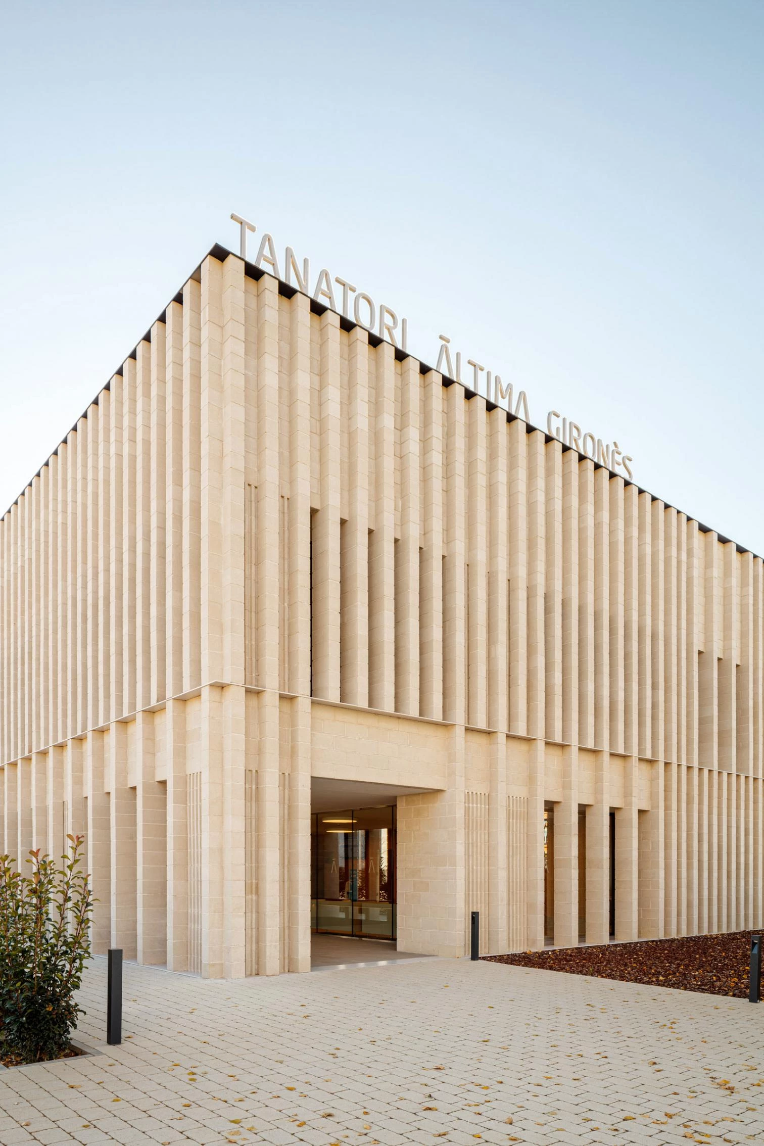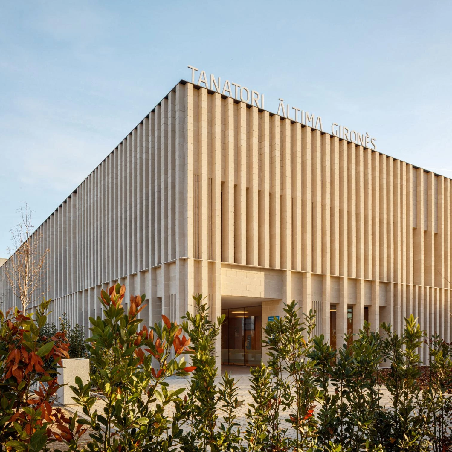 This refurbished building is located in the Mas Xirgu industrial complex, on the outskirts of Girona. The commission consisted in converting an industrial warehouse that was no longer in use into a funeral service building for the city. The original construction, an open-plan building, had just one floor and practically no natural light.