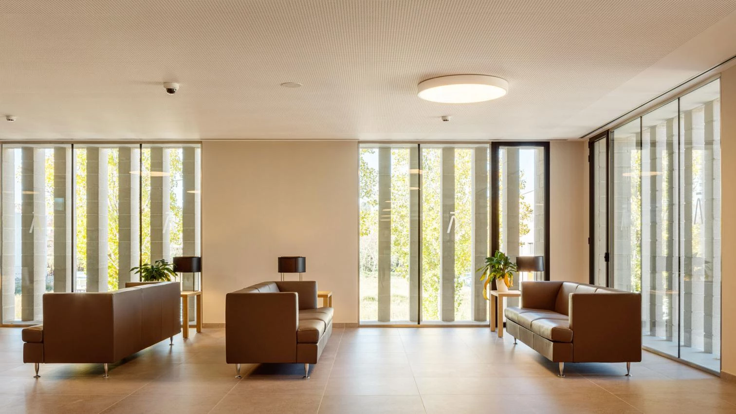 Designing a funerary building demands considering the functionality of the accesses and of the different spaces, but it is also important to pay special attention to their quality, bearing in mind the specific circumstances of the users that visit them. A funeral building must be an intimate, safe, warm, and comfortable space. For this reason, the project involved a particularly complex challenge, because the starting point was a cold container located in an industrial complex and surrounded by warehouses and factories, introverted buildings of considerable dimensions.