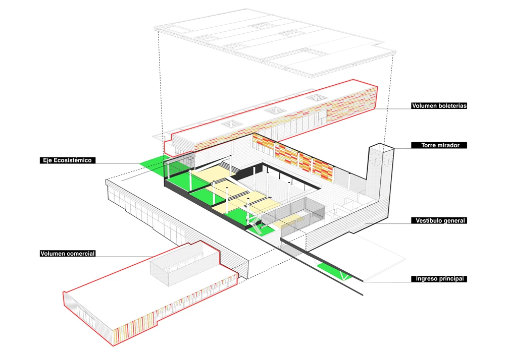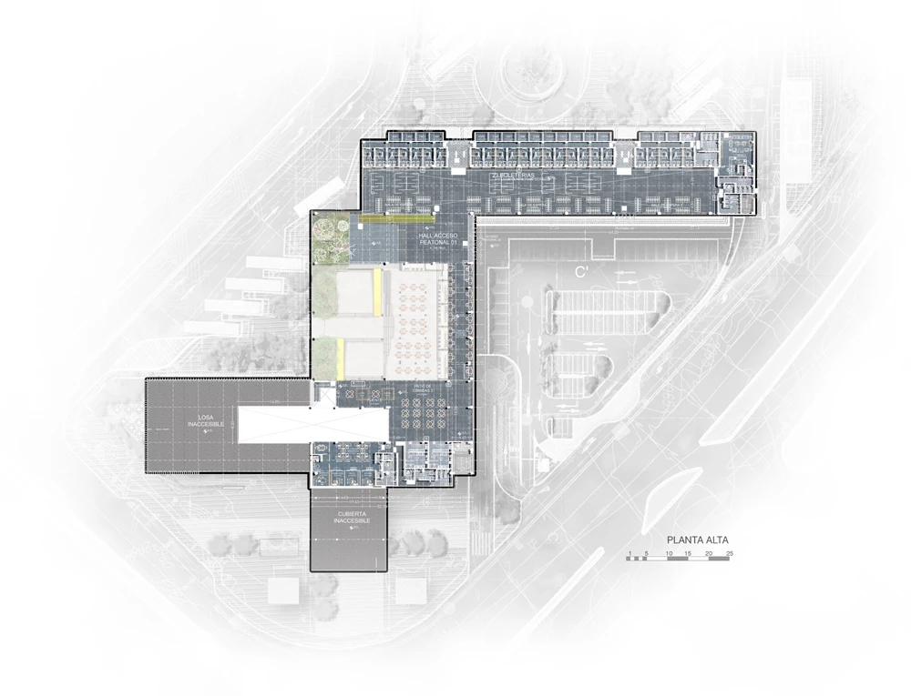 Working from offices in Quito and Madrid, the firm TEC Taller EC – headed by Pablo Castro and Roberto Morales – has won the competition to enlarge the bus terminal of the city of Loja, known as Ecuador’s cultural capital, in the southern part of the country. Its proposal preserves 40% of the existing building and expands the program by 60%, doubling the station’s current capacity. The new layout presents three volumes and seeks to liven up the public space through a large plaza and a multipurpose roof where fairs and exhibitions will be held. The project unfolds on different levels in response to the variable topography of the site, addressing the slope through a ramp access with double height-spaces. Stitching all this together is a a green axis which, with native plants grown on it, gives identity to the building’s interior and regulates its climate through passive strategies. TEC Taller EC