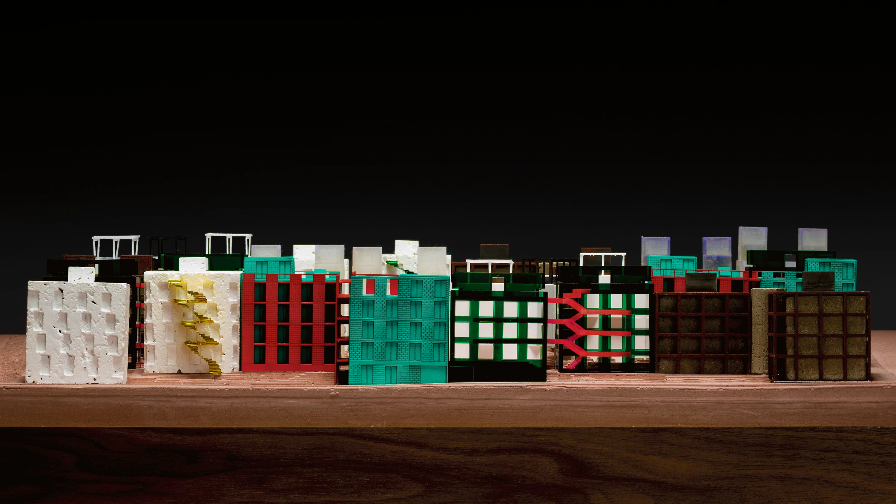 As part of a collaborative project, the five buildings are interconnected by exterior stairs that, aside from providing access, become communal terraces to be shared by residents. Sliding doors divide the interior spaces of the apartments...[+]