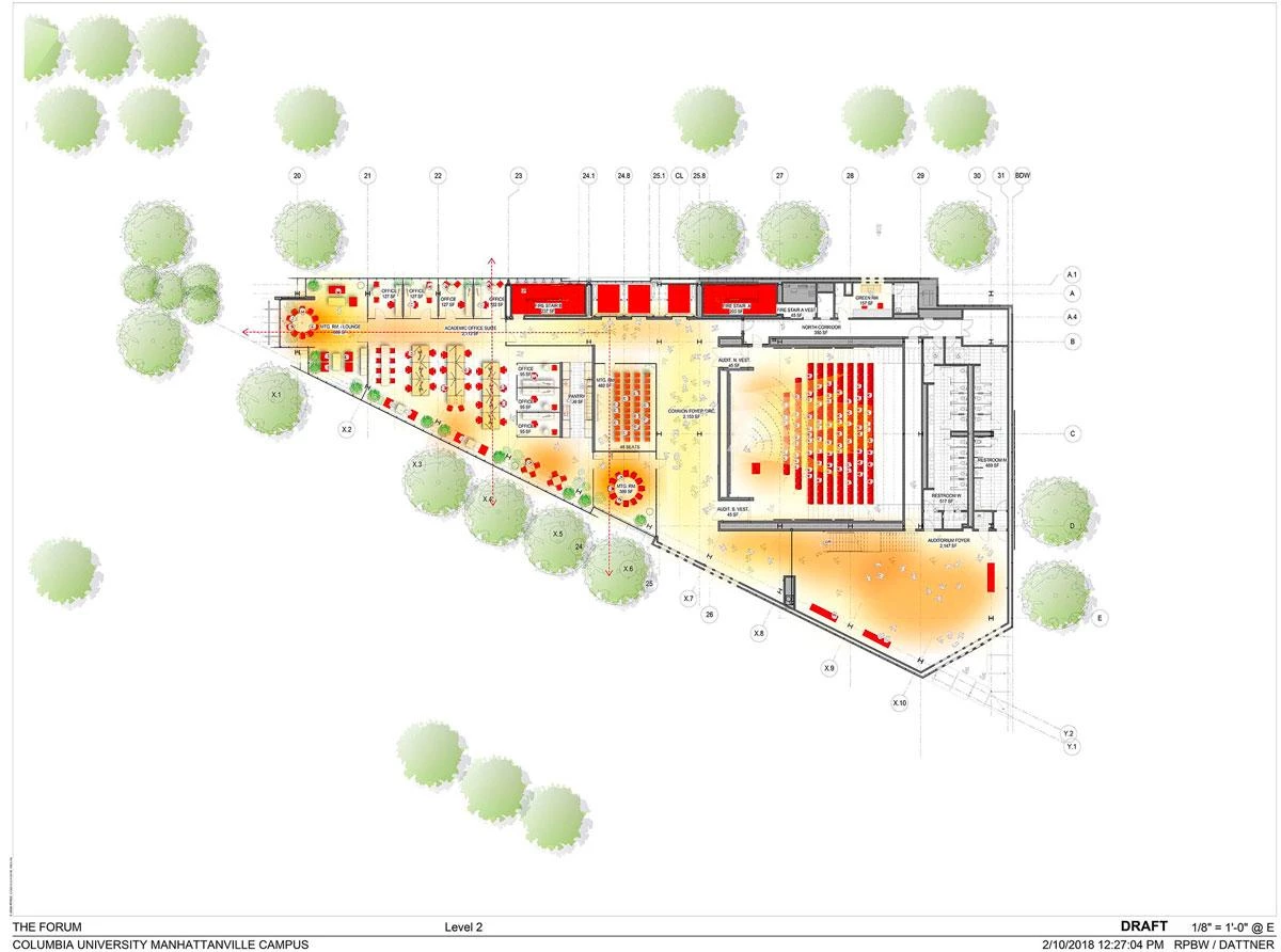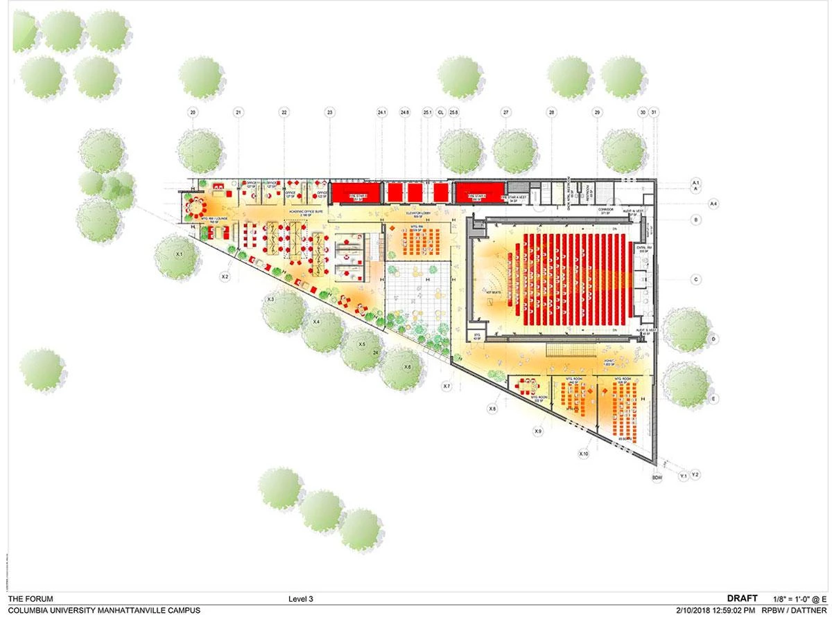 Renzo Piano has completed his third construction for Columbia University's new Manhattanville Campus in Harlem, which with three other academic buildings is part of the first phase of the masterplan that the Italian architect drew up in collaboration with SOM (Skidmore, Owings & Meriill). The triangular volume of glass and concrete rises close to the Jerome L. Greene Science Center, inaugurated in 2016, and the Lenfest Center for the Arts, opened in 2017, both also works of RPBW (Renzo Piano Building Workshop). The Forum, as it is called, contains an auditorium seating 437 which takes up the block's two upper levels, clad in prefabricated panels of concrete. An information center, a café, and flexible spaces for community events are distributed on the ground floor, the glass skin of which seeks to draw the attention of passers-by.