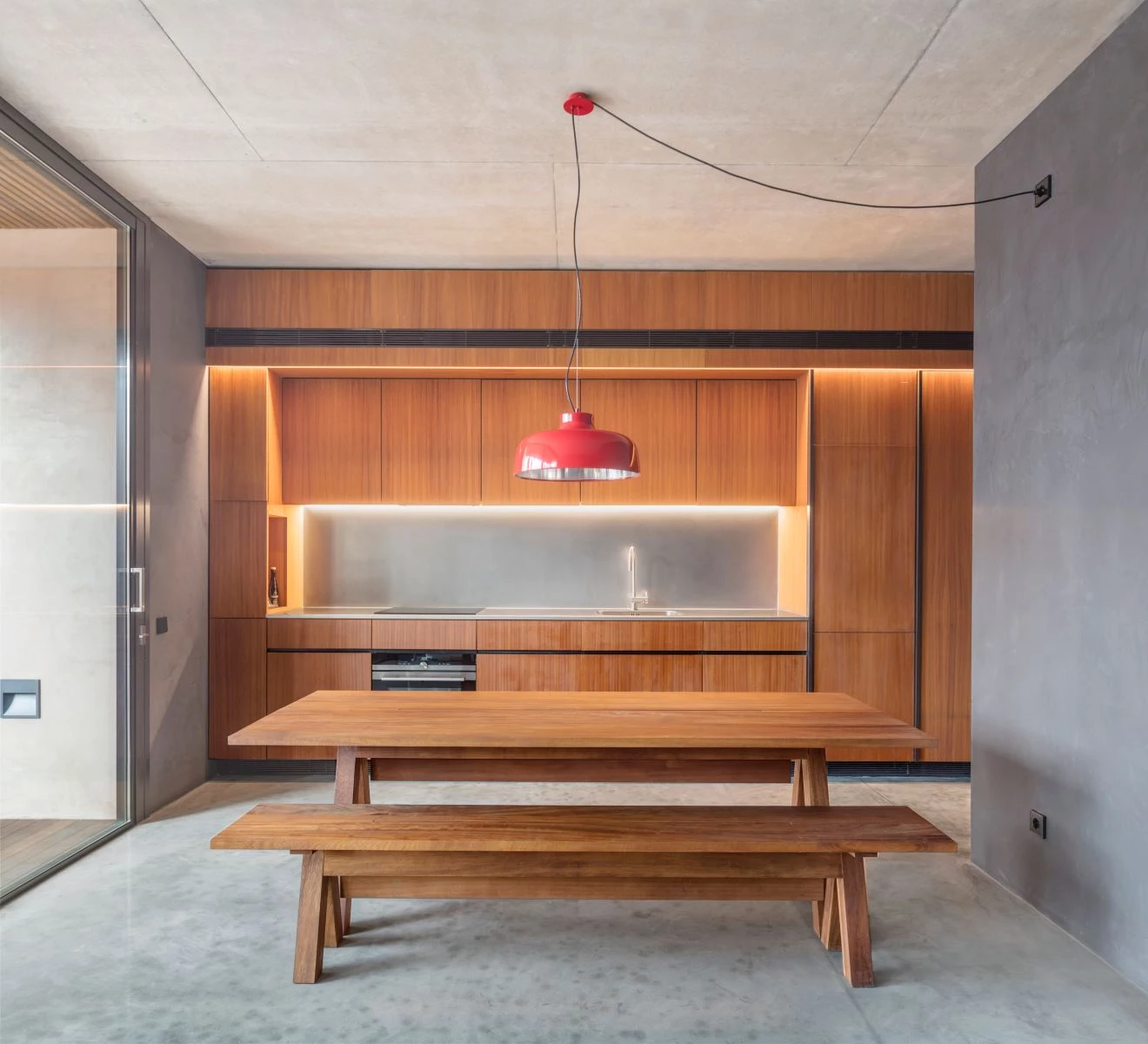 The longitudinal facade that incorporates the communal stair is clad with ceramic lattices that permit natural ventilation and a constant, natural light, while generating rich nuances of light in the access. The construction has been carried out with passive design criteria, which improves the building’s energy efficiency – with an A rating – and considerably reduce energy use, with systems like a double-wall thermal enclosure and 10 centimeters of insulation on the facade and 12 on the roof. All the apartments have an underfloor heating and cooling system and integrated climate control with aerothermal technology.