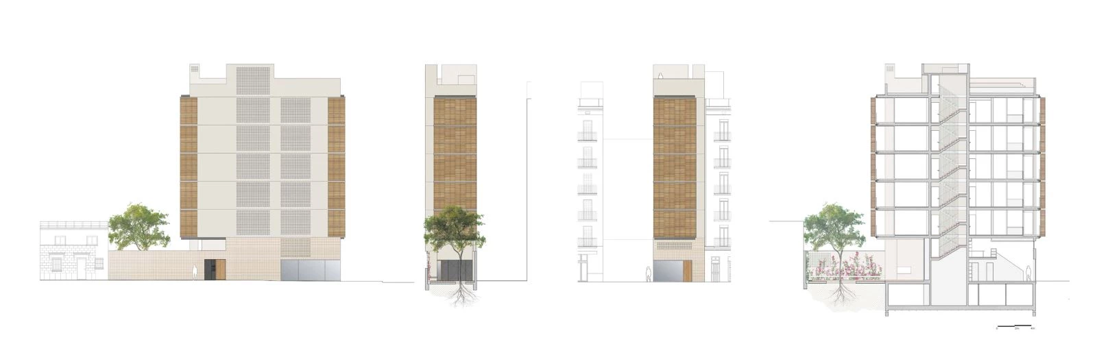 The idea of raising this apartment block came after four friends, with ages between 55 and 65 and living in Lucerne, decided to build a second residence in which to spend periods of time and also with sights set on retiring in Barcelona, a city they have strong ties with. Sustainability, architectural quality, and passive energy were the project guidelines from the very beginning.