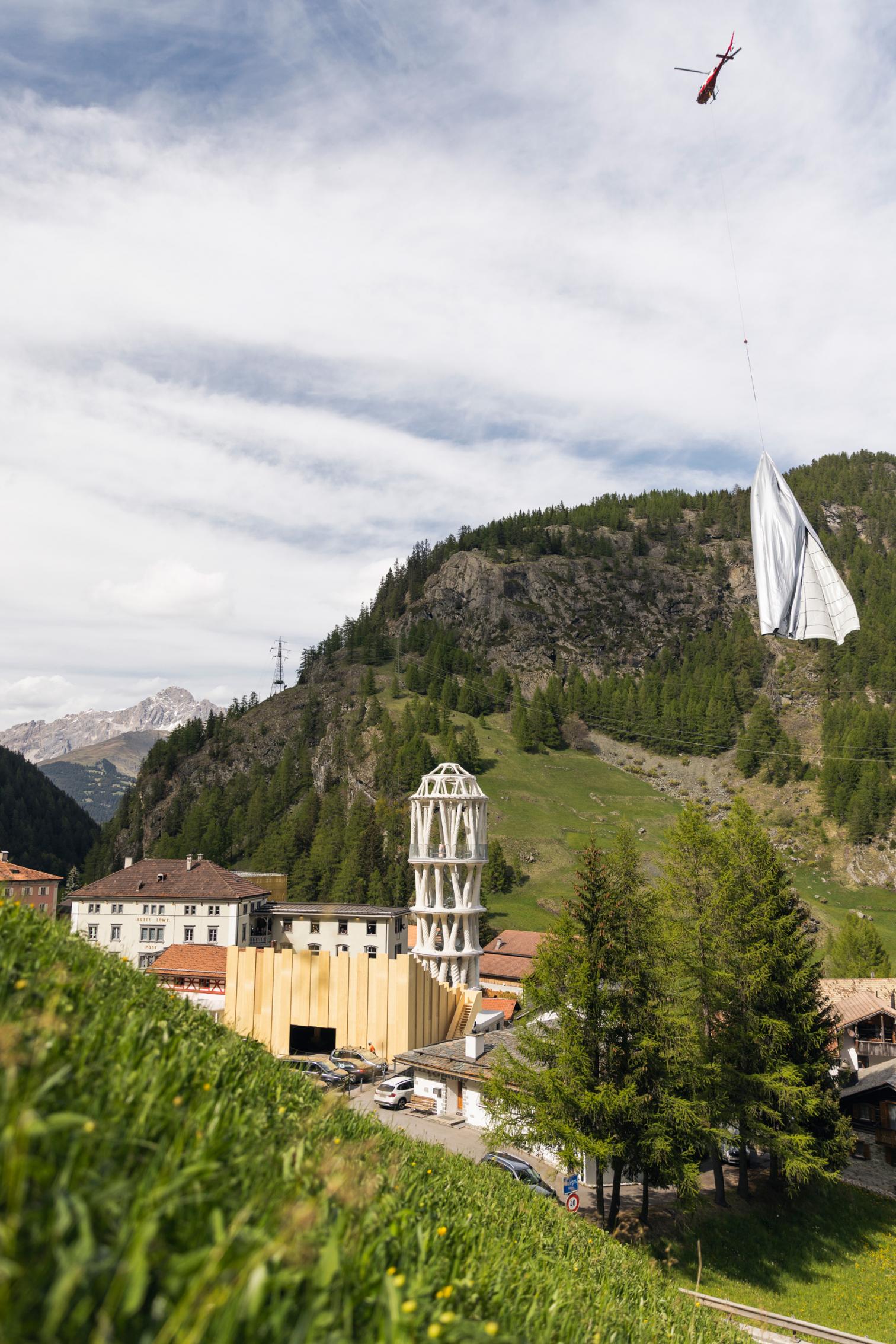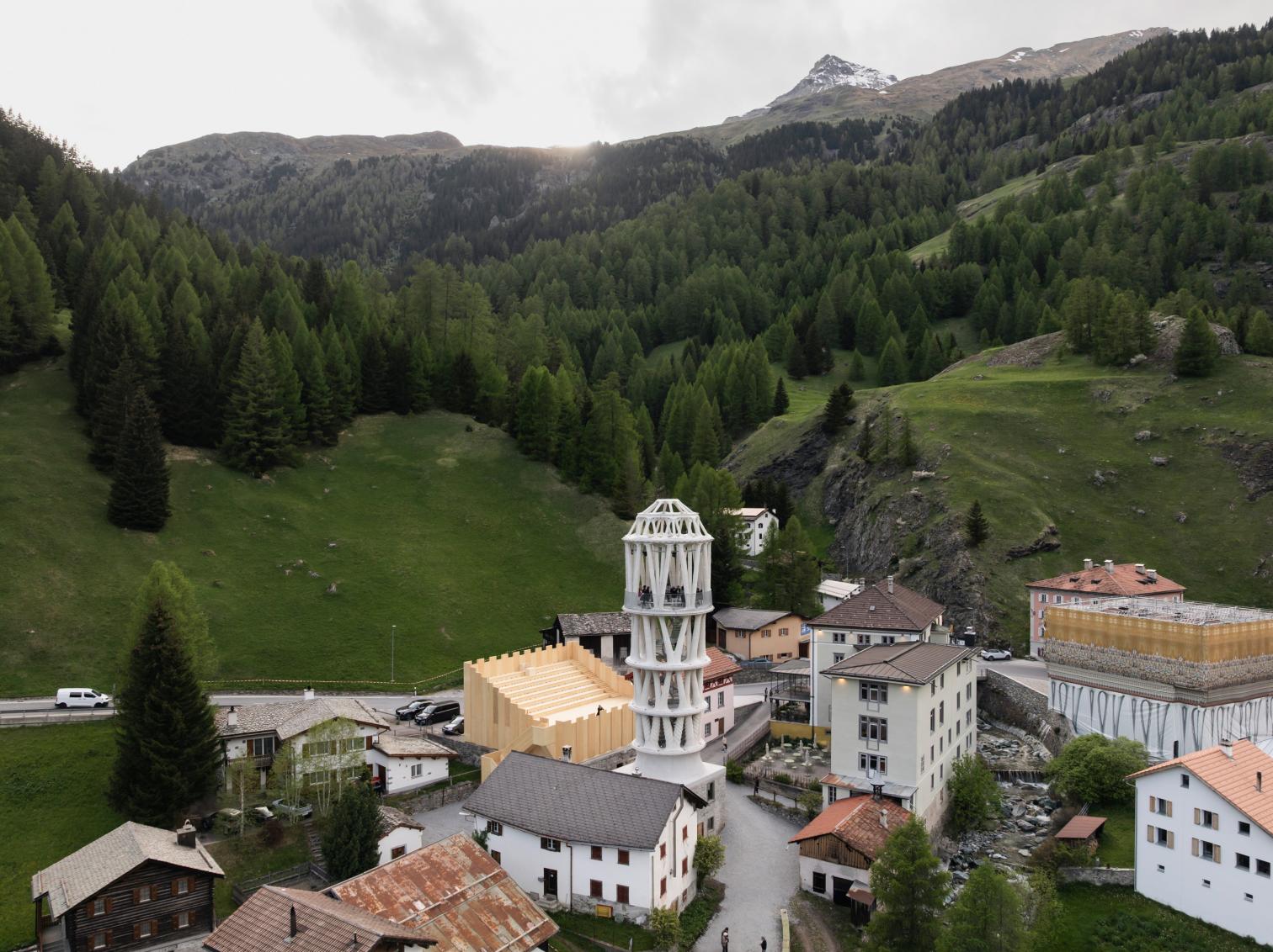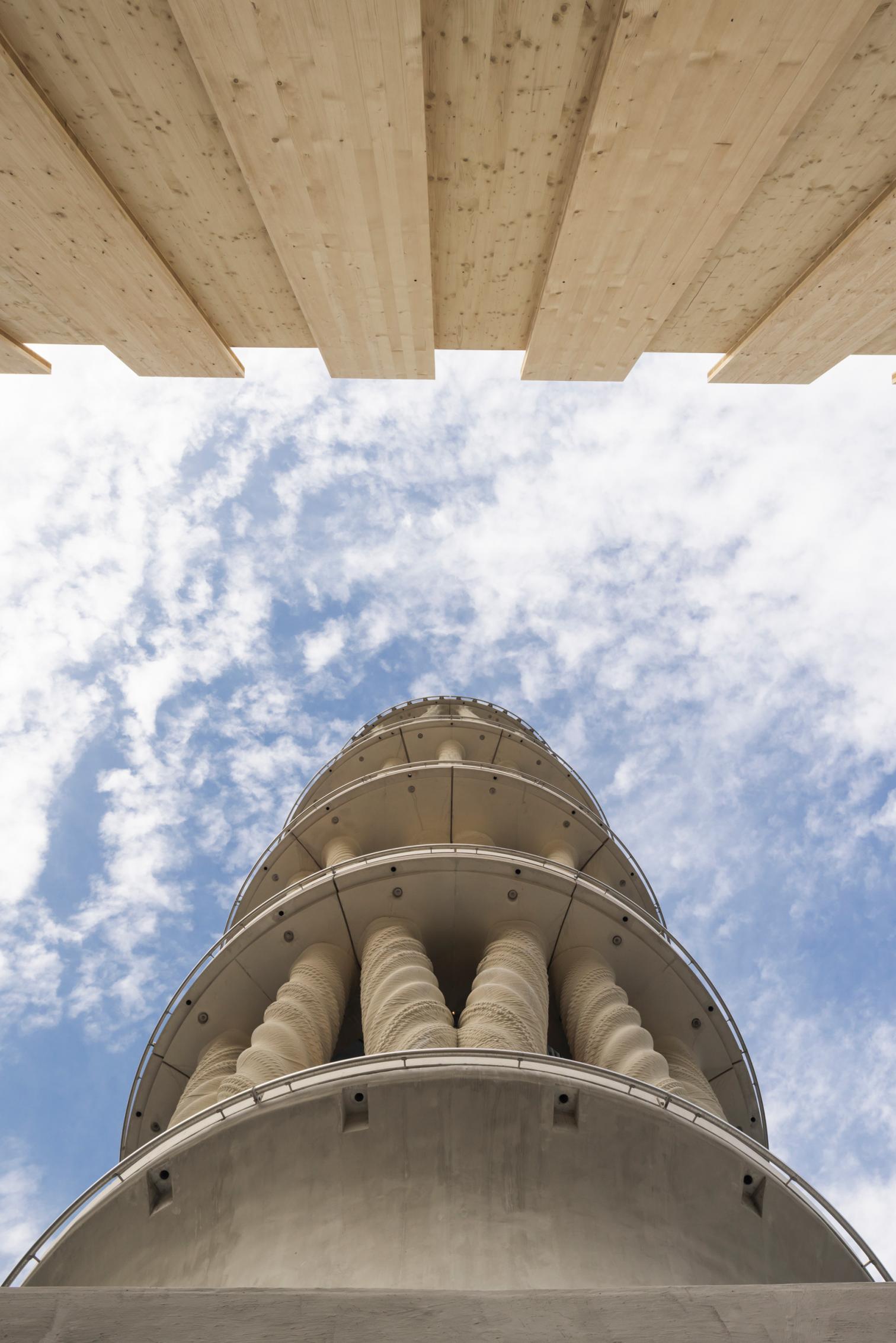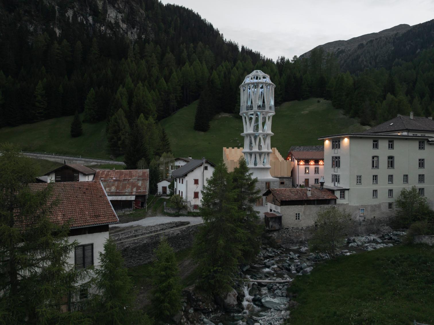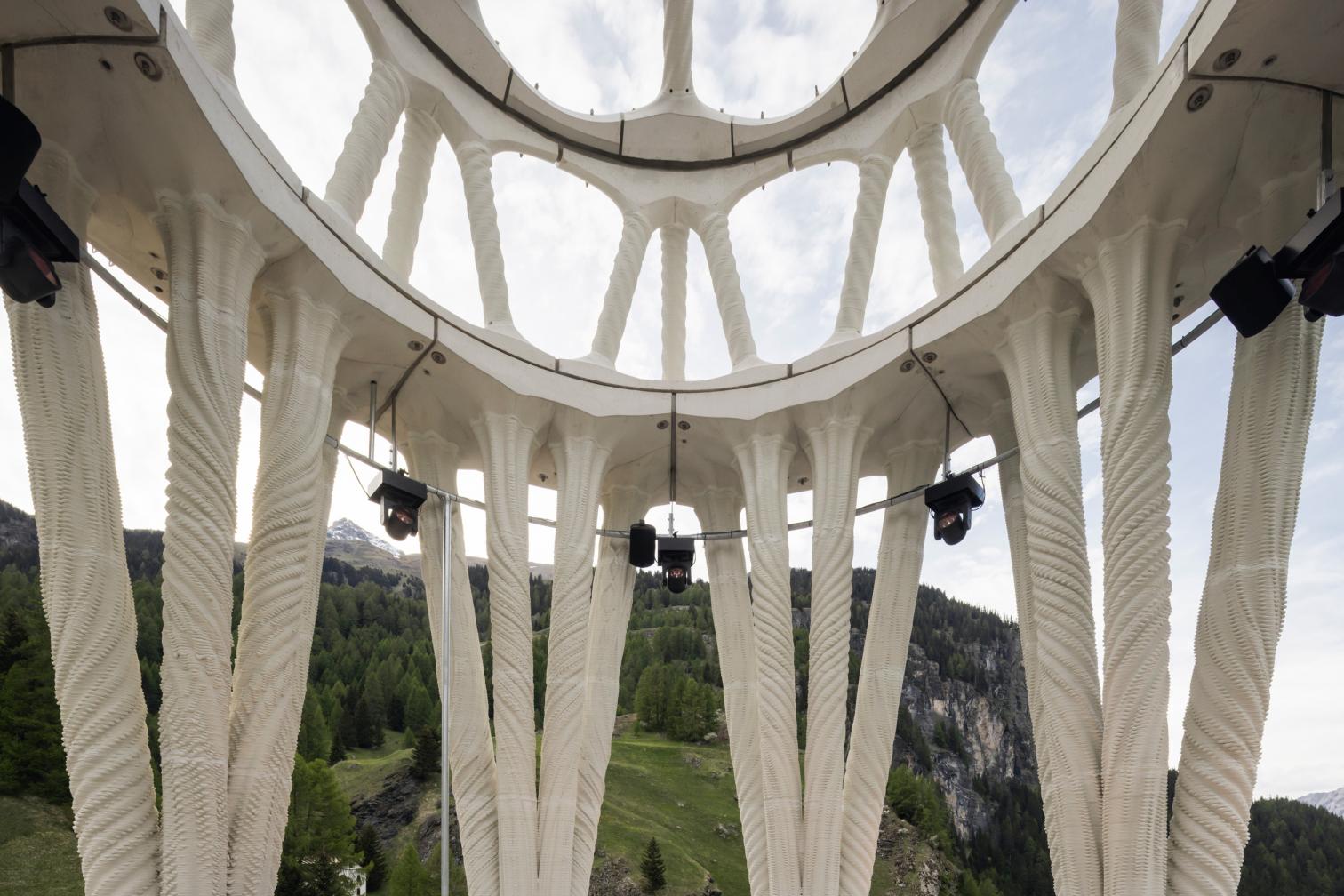 Rising almost 30 meters, Tor Alva is the tallest 3D-printed tower in the world. Built by Nova Fundaziun Origen with ETH Zurich, it aimed to revitalize Mulegns (Switzerland), a small Alpine village with only eleven inhabitants at present. Tor Alva (White Tower) will function as a cultural center for five years, then be reassembled at another location. Crowned by a vaulted space, the composition of 32 columns distributed in four levels emulates a layered cake, paying tribute to the history of pastry chefs in the region.