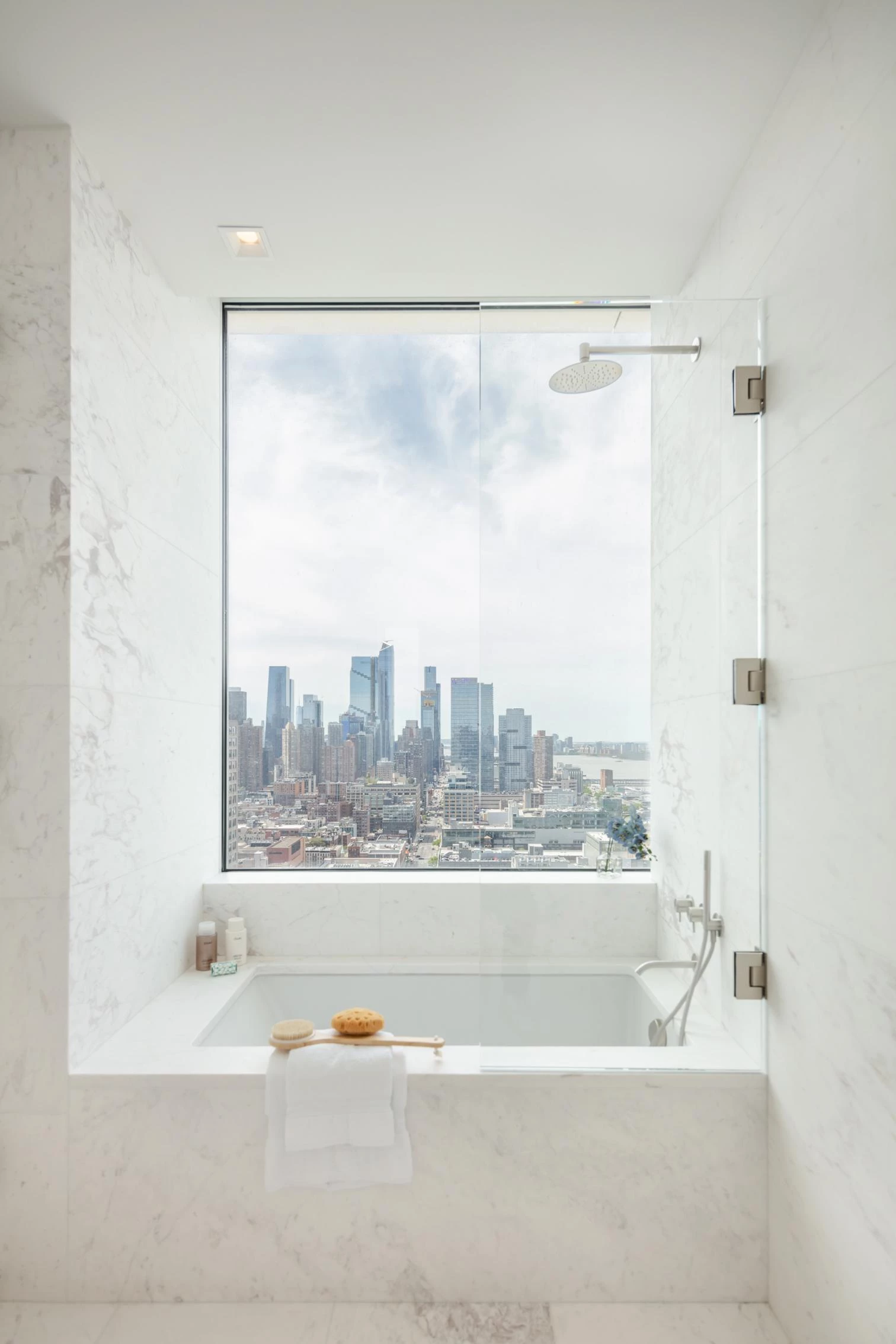 The Portuguese architect Álvaro Siza has completed a residential high-rise at 611 West 56th Street in New York City, his first work in the United States. With a limestone cladding striking a contrast with its neighbors, the slender, 137-meter tower containing 77 luxury apartments is located in Manhattan's Upper West Side, between Riverside Park and Central Park, close to the triangular Via 57 West building by the Danish firm Bjarke Ingels Group (BIG). Carried out by the property developers Sumaida + Khurana and LENY, the new skyscraper rises from a wide base and its crown is a 16-meter windowless block. The tower's interiors were designed by the New York firm Gabellini Sheppard Associates.