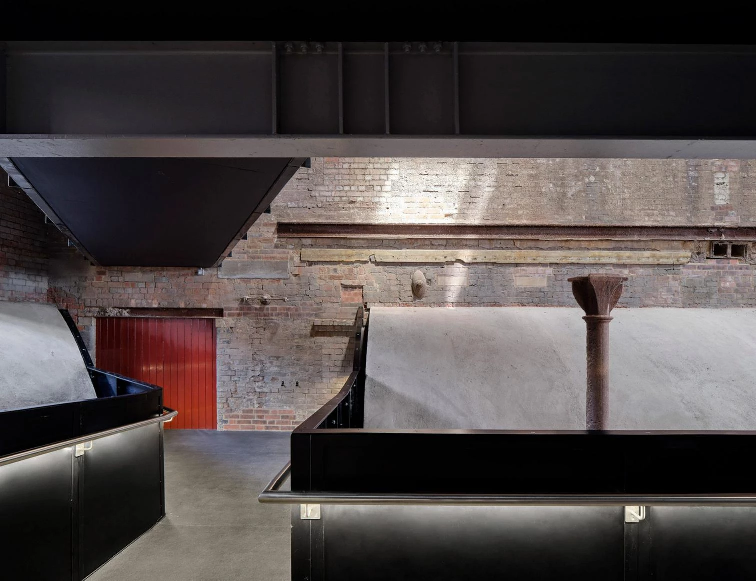 The vertical circulation elements are located in the building’s furnace, with elevators, a staircase of black steel, and footbridges, under a ceiling restored with wood and steel. Access to the tower has been provided, so visitors can go up for views of the city.