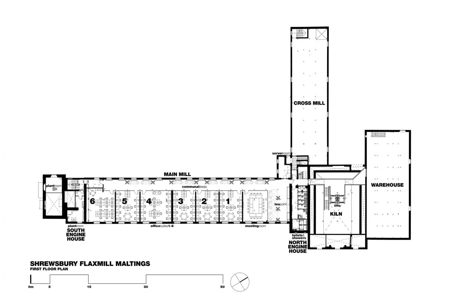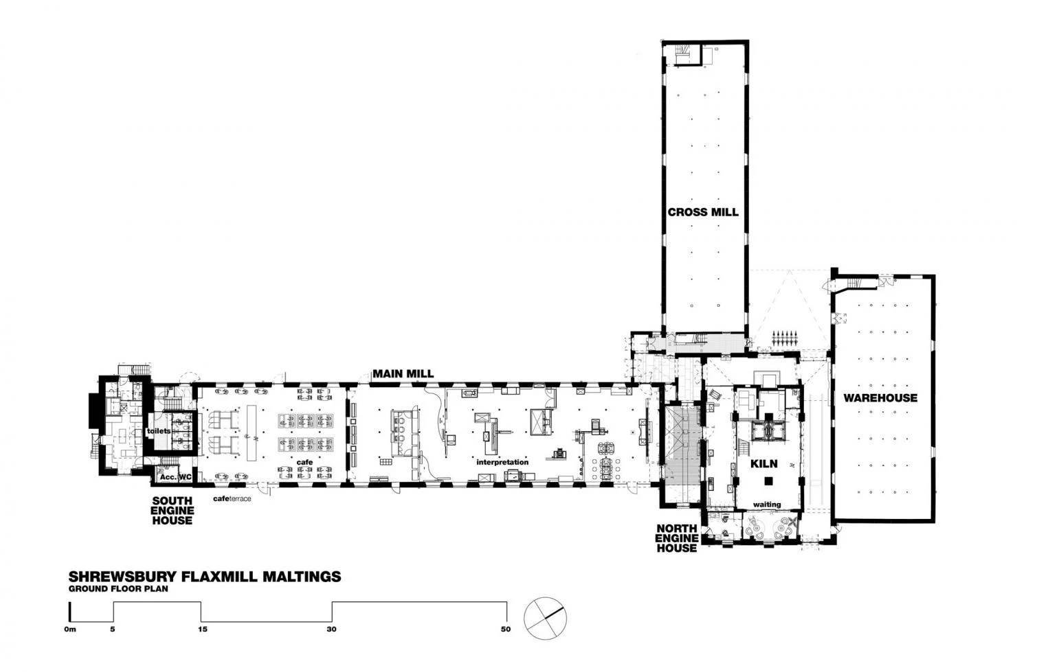 Shrewsburg Flaxmill Maltings was originally built in 1797 and served different purposes in the course of time, including as military barracks during World War II. The site closed in 1987. A work of Charles Bage, the listed building is known as the ‘grandparent of skyscrapers’ because of its cast-iron frame. The British firm Feilden Clegg Bradley Studios (FCBS) was commissioned to restore its structure to harbor a museum on the history of buildings and offices.
