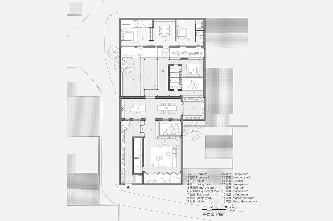 An everyday universe with echoes of Taoist cosmology and Confucian hierarchy, the Chinese courtyard-house has for thousands of years been the archetype that organizes family life. Although in the last century it had detractors who found it obsolete and incompatible with the massive growth of cities, recent years have seen many of these dwellings make a comeback, including one in the north part of Beijing which has been revitalized through a transversal volume with a curved roof that creates six courtyards of varying scale and character, where the material presence of recycled bricks contrasts with the new cedarwood frame and bamboo joineries.