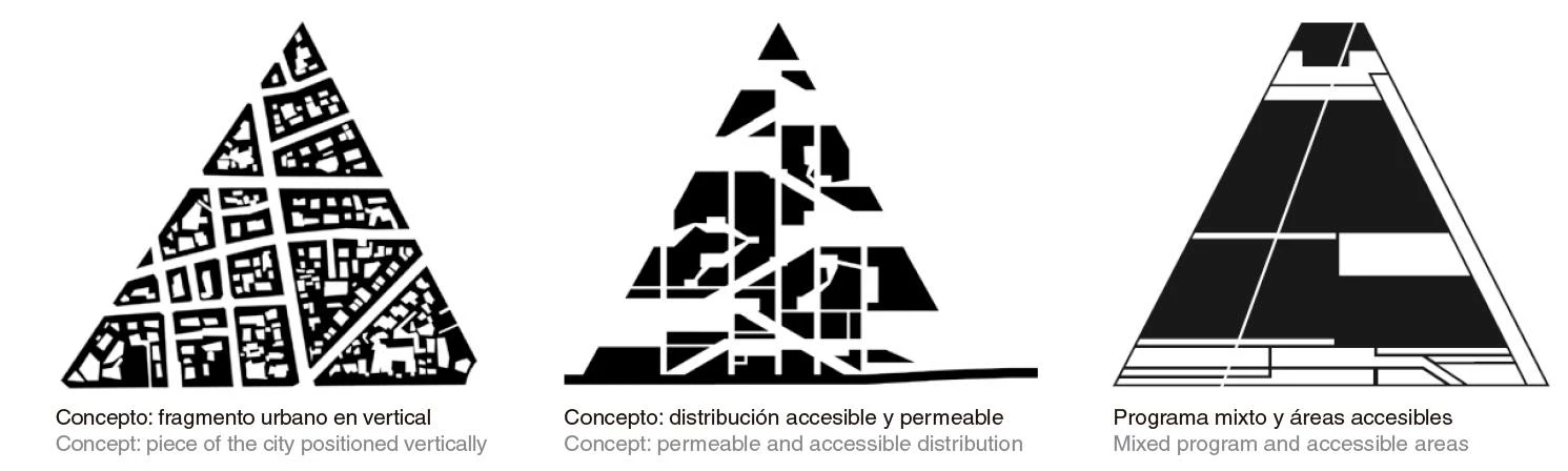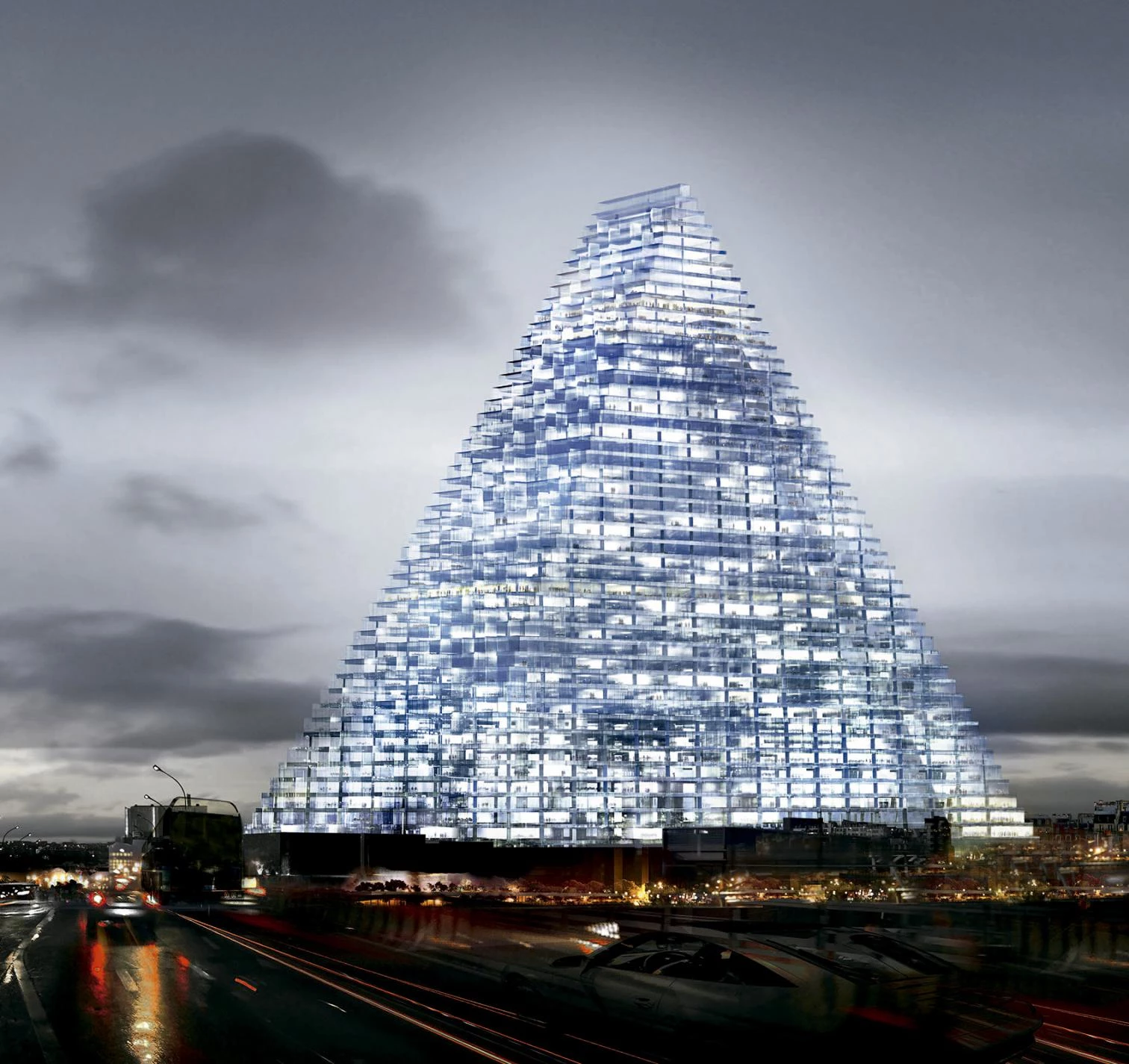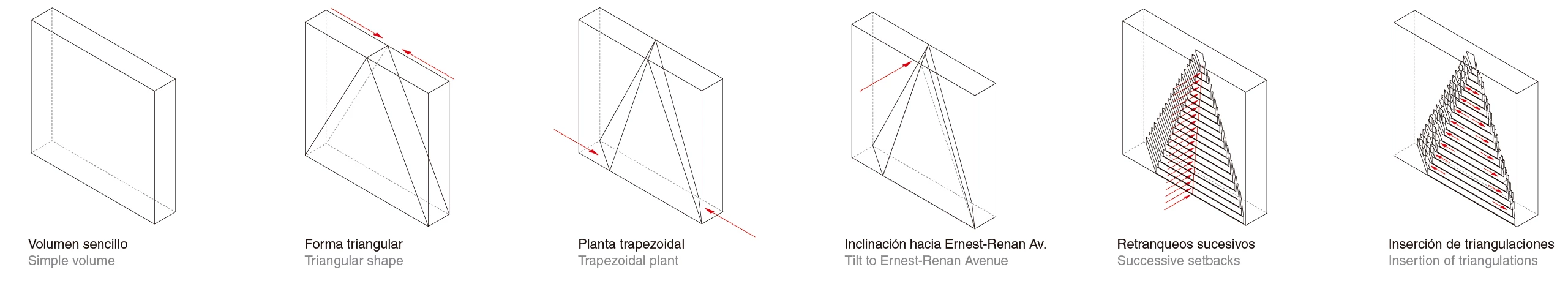 Herzog & de MeuronSituated on the outskirts of Paris, at the Porte de Versailles and beside the Parc des Expositions, Triangle will be a visual reference on a metropolitan scale. Its singular shape – an irregular pyramid with a trapezoid base – contrasts with the unique profile of a classic tower in the form of a simple extrusion. The volumetry of Triangle allows for multiple and dynamic ways of perception, varying depending on the vantage points. As such, the building promises to become an ‘actor’ of the Parisian skyline, and will lend major visibility to the Porte de Versailles square and the Parc des Expositions convention center. On the scale of the Porte de Versailles site, the insertion of an emblematic building along the avenue Ernest Renan, in the very heart of the Parc des Expositions, and set back from the square and the neighboring buildings, will play a significant role in the reorganization of the flows and the perception of urban space. It will also restore the historical axis linking the 15th arrondissement of Paris with the surrounding districts of Issy-les- Moulineaux and Vanves.
