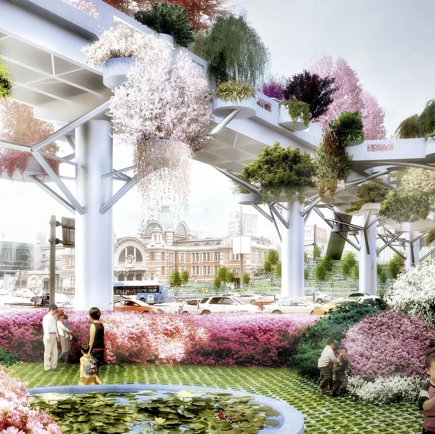 Since its construction in the 1970s, the overpass by Seoul’s Central Station connected Namdaemun market with the area located east of the train tracks until safety inspections in 2006 deemed the structure unsafe and intended to demolish and rebuild it. However, further consultation with residents and experts led to the plan to regenerate the overpass into a pedestrian walkway and public space.