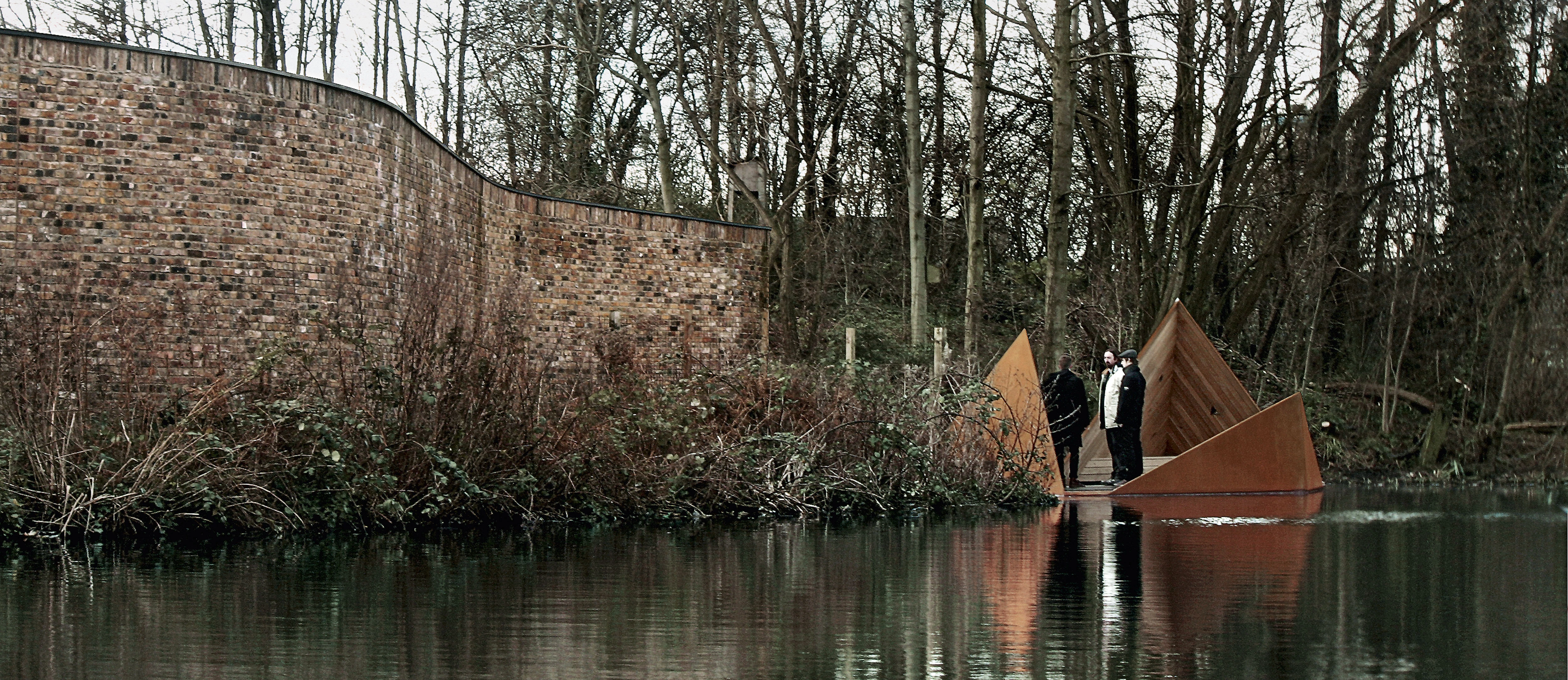 The geometry of the floating platform references the primitive retreats or laavu traditionally used in Scandinavian forests, transferred here to a metropolitan park in London, where visitors can escape the city noise in contact with nature... [+]