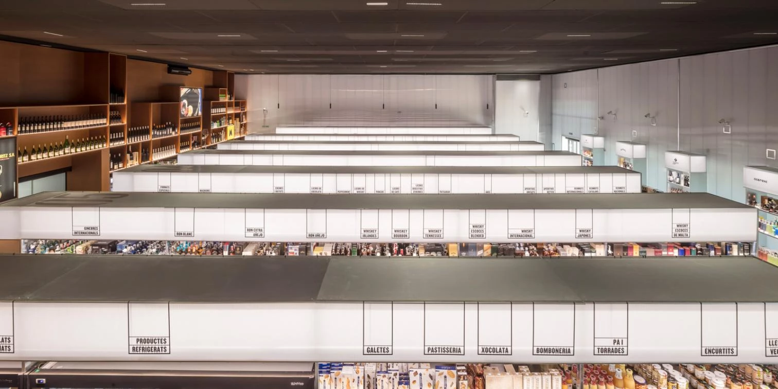 Carmelo Zappulla of External Reference Architects and Chu Uroz renovated this liquor store in a 700-square-meter space located at kilometer 1187 along the N-340 road leading from Vendrell to Comarruga, in the Lower Penedes region.