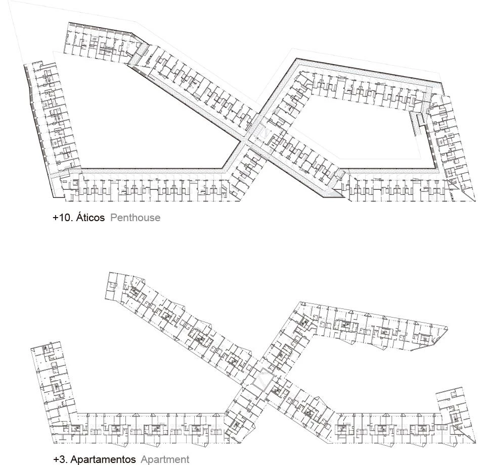 The building known as 8 House is located in Southern Ørestad, next to Copenhagen Canal and with broad views over Kalvebod Fælled’s protected, open spaces. With 60,000 square meters it is the largest private promotion ever launched in Denmark, including housing as well as office spaces for the city’s business and trade. Unlike traditional housing blocks, the ‘eight’ stacks in horizontal layers all the ‘ingredients’ of a dense neighborhood: up to 10,000 square meters of commercial areas and offices mixed with residential programs. The whole complex thus asserts its presence as a three-dimensional neighborhood in which the suburban way of life – individual houses with gardens – is combined with the diversity of uses in a big city, in which work, retail and housing coexist. To make the most of each program and ensure the apartments have the best views and light, these take up the upper levels and the office and retail areas unfold at the base. As a result, the different layers achieve a quality of their own: the privacy in the apartments is ensured while the offices merge with life on the street.