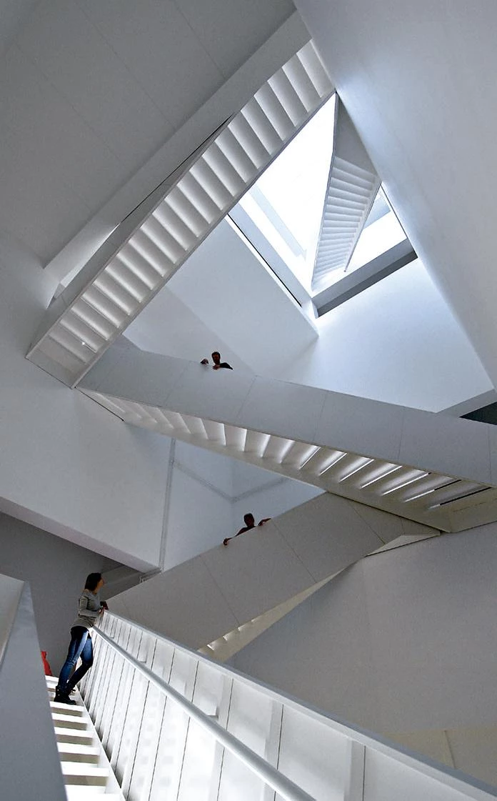The southwest corner descends to ground level creating two gardened roofs with a deep slope, both adding 1,700 square meters, which are placed strategically to improve climate control aside from giving the project a visual identity by establishing a connection with the farmlands located further south.