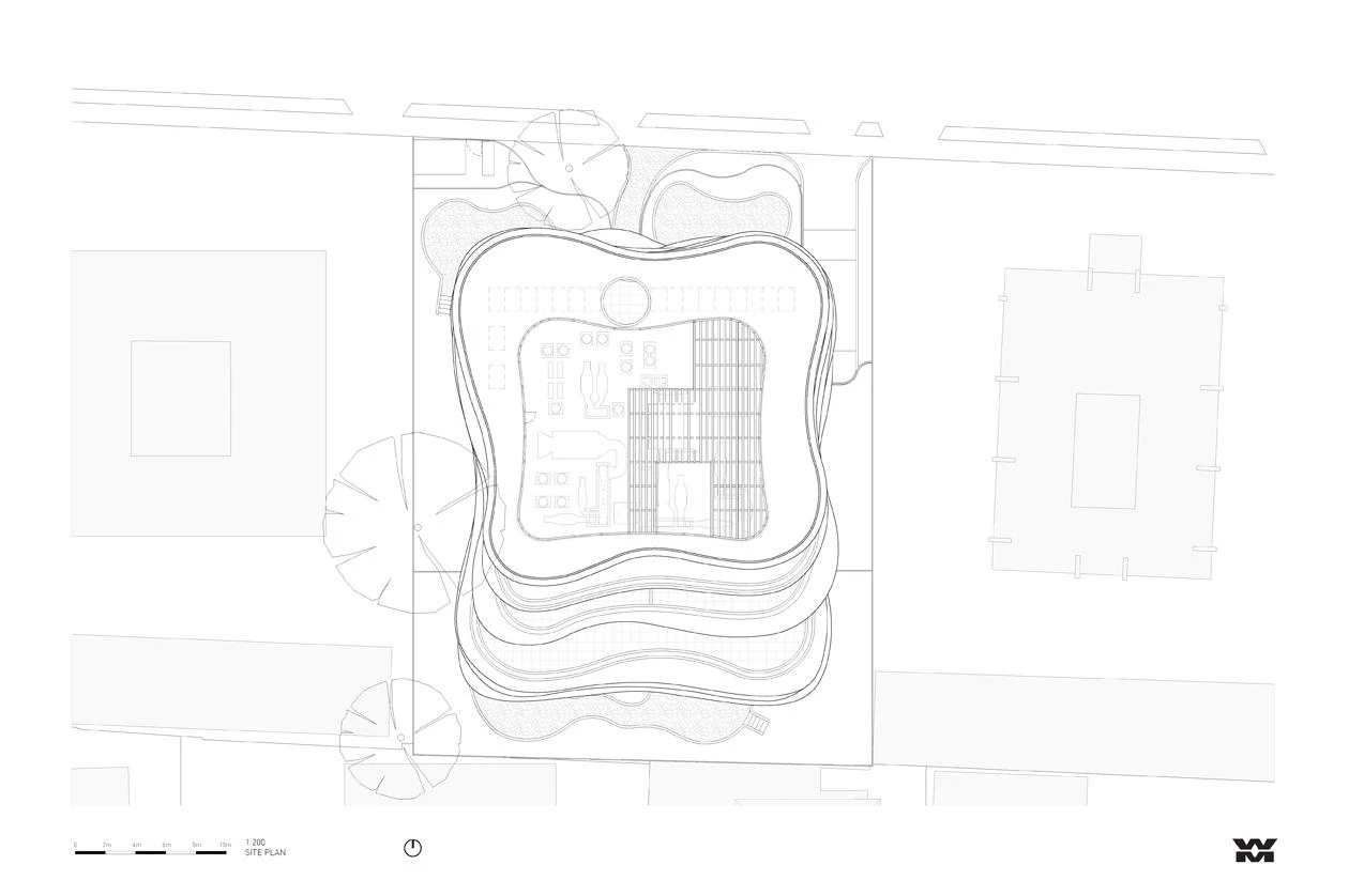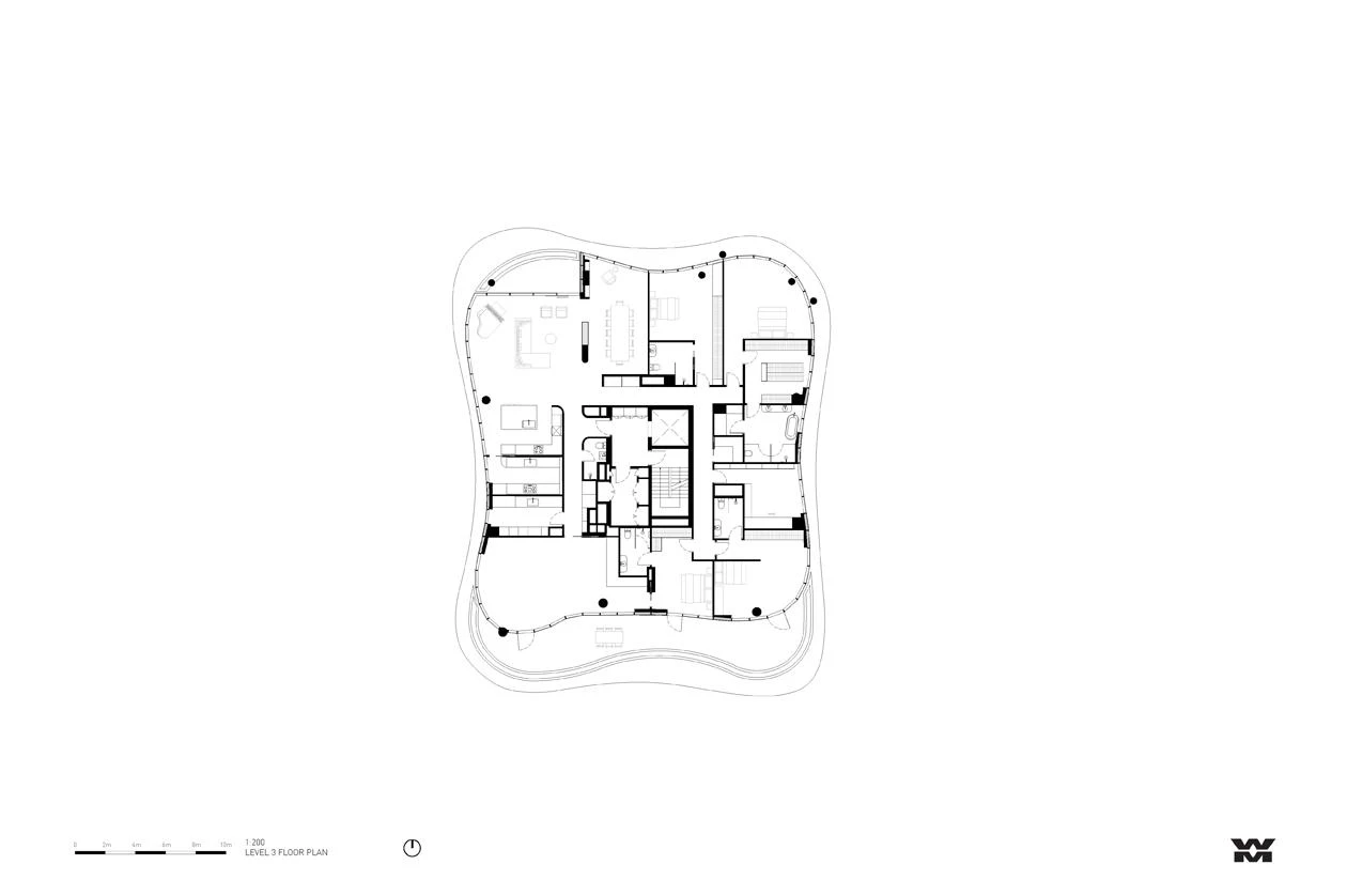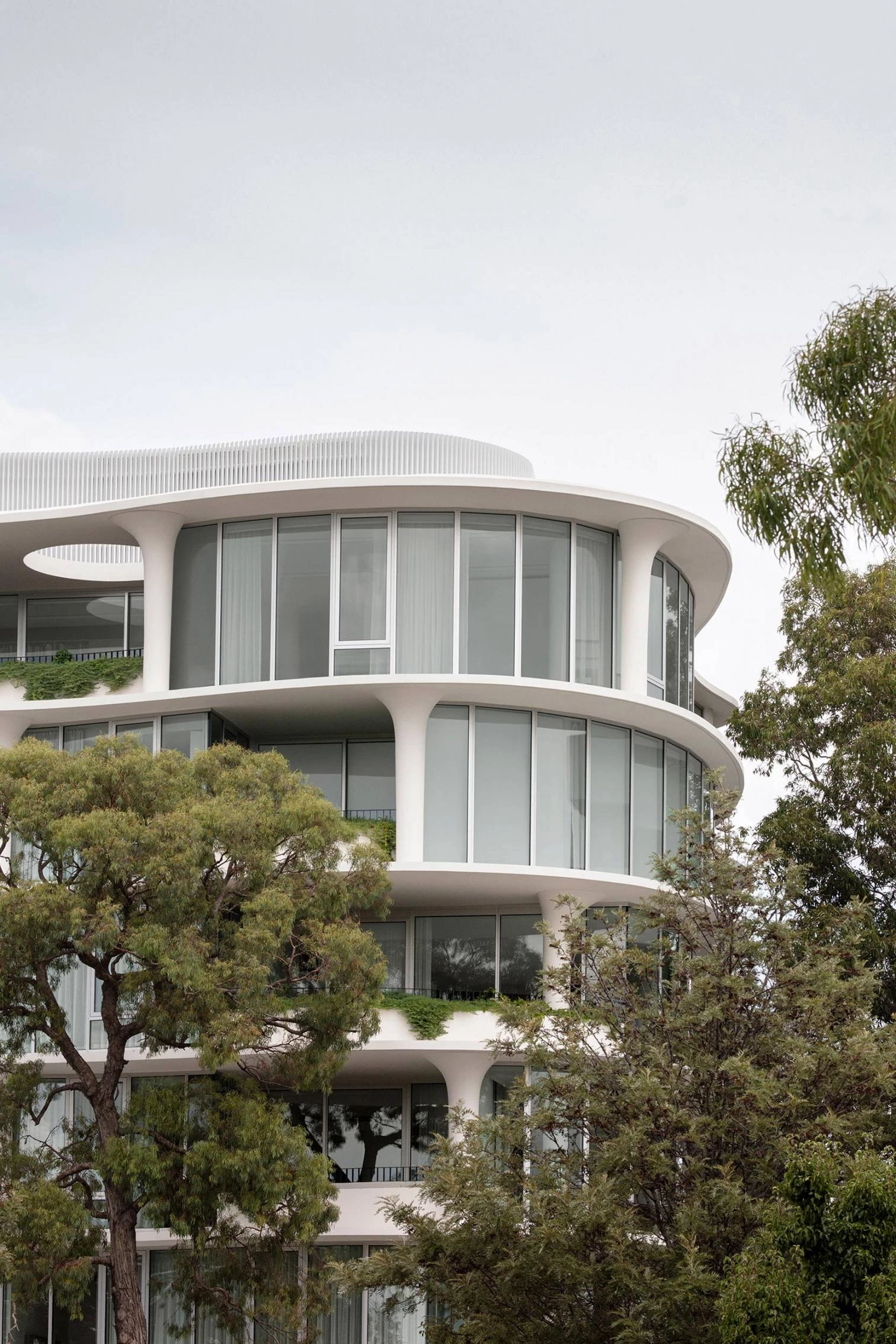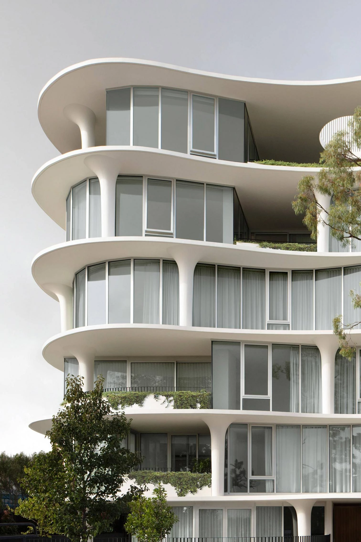 Located in Prahran, 5 kilometers from Melbourne’s central commercial district, this residential building contains 15 units on 6 floors, all oriented to get the best views of the Orrong Romanis Reserve. In this work of the Australian firm of Roger Wood and Randal Marsh, the organic composition stratifies the sculptural spaces in an undulating facade, allowing the integration of intermittent gardens. The interaction of fluid forms gives the building a sense of visual movement.