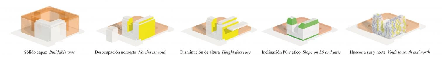 The absence of urban references or of an established residential activity in the new peripheral developments demands setting new guidelines for projects in these areas. In this case, the entropic landscape of the Ensanche de Vallecas determines the context for the insertion of this corner piece in a closed urban block, whose design criteria do not address traditional concepts of urban design but parameters that are closer to thermodynamics.