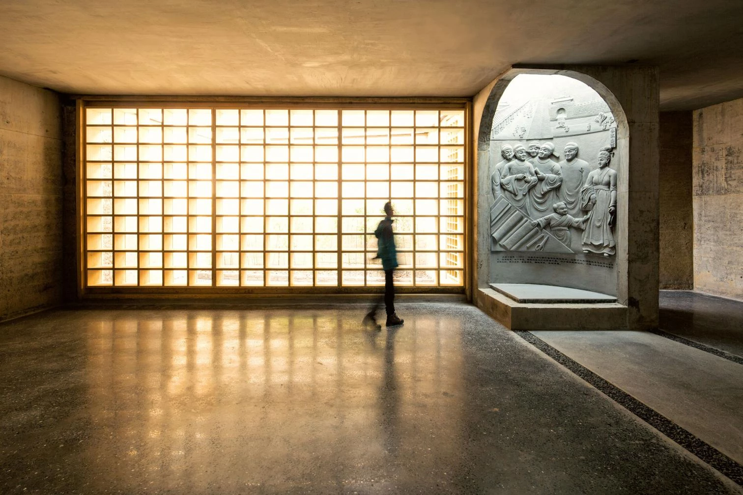 This roof lighting strategy takes inspiration from a traditional local heating method. The skylights create a solemn, peaceful, and spiritual atmosphere, functioning as focal points within the building and guiding visitors through the spaces.