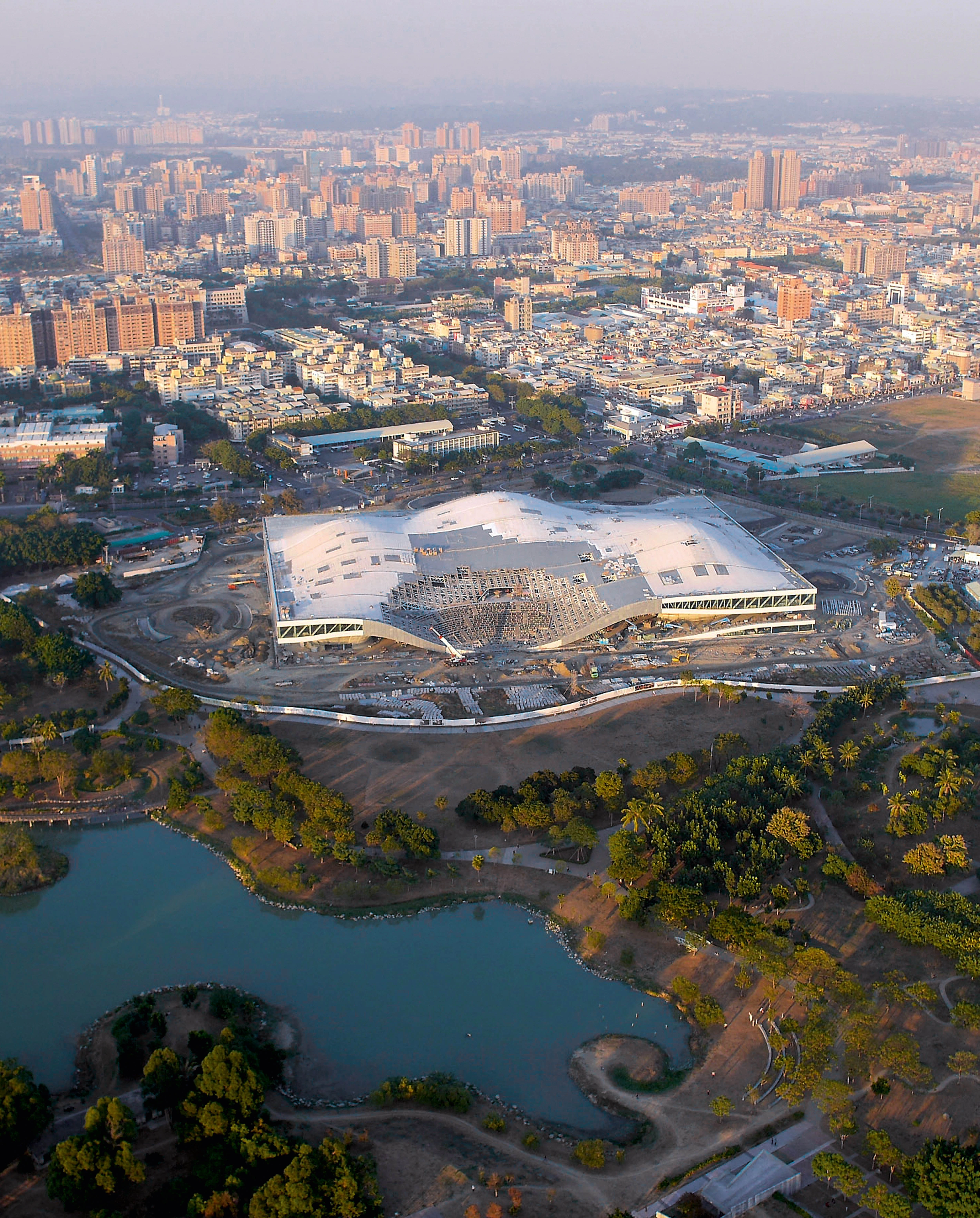 The National Kaohsiung Center for the Arts (Wei-Wu-Ying) symbolizes the huge transformation of the Taiwanese city of Kaohsiung over the last years. The city is China’s second largest in size and importance after the capital Taipei, with a population of almost three million residents, and the new arts center promises to become a new icon marking the transition from international port to modern, diverse metropolis. Mecanoo, the Dutch office led by Francine Houben (Sittard, The Netherlands, 1955), is completing the building within the government’s program for the construction of cultural facilities on an old military site, as part of an adjacent subtropical park... [+]