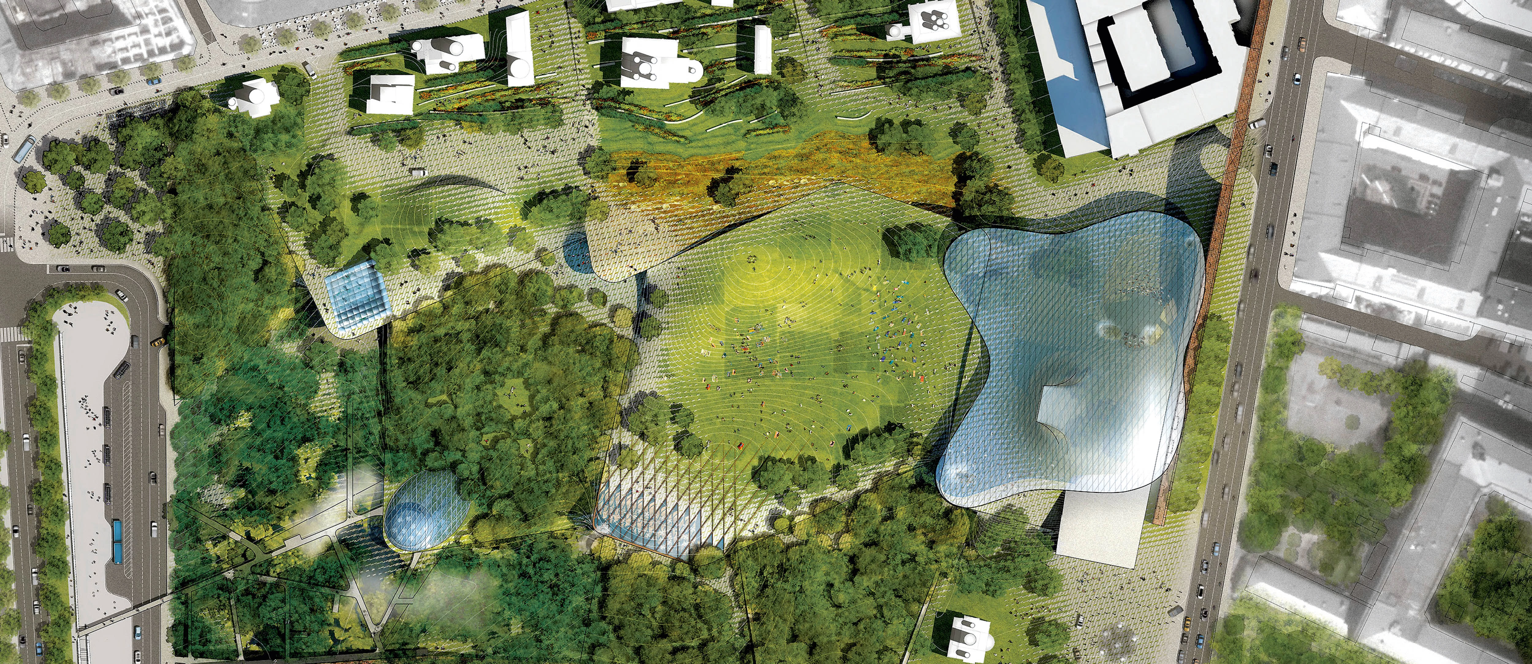 Based on the concept of wild urbanism, which integrates the built and the natural in hybrid landscapes, four types of Russian biomes exist in the park, organized in terraces descending from northeast to southwest: tundra, steppe, forest and wetland.