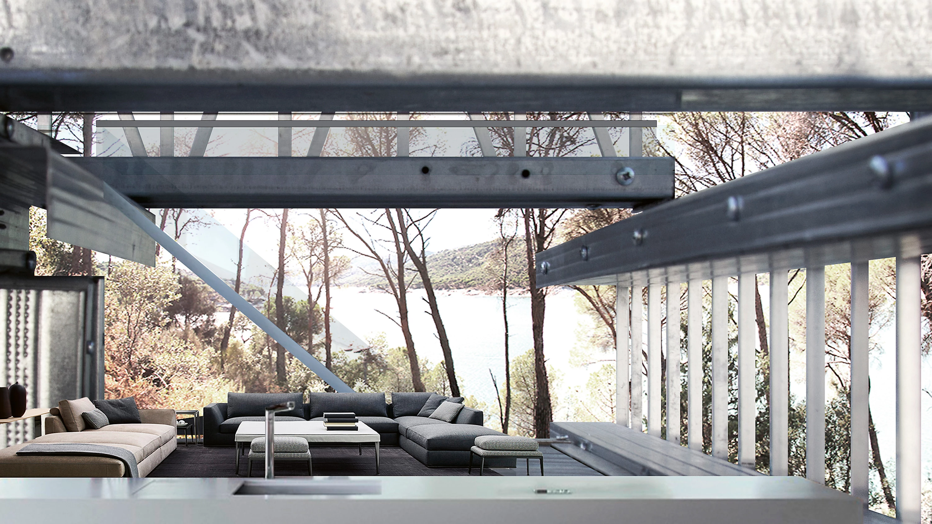 Embedded in the forested landscape surrounding the San Juan Reservoir, outside Madrid, Zigzag House is designed with the aim of living in the air, so it floats over the ground, touching the earth delicately and cascading down a slope that ends by the lakeshore.